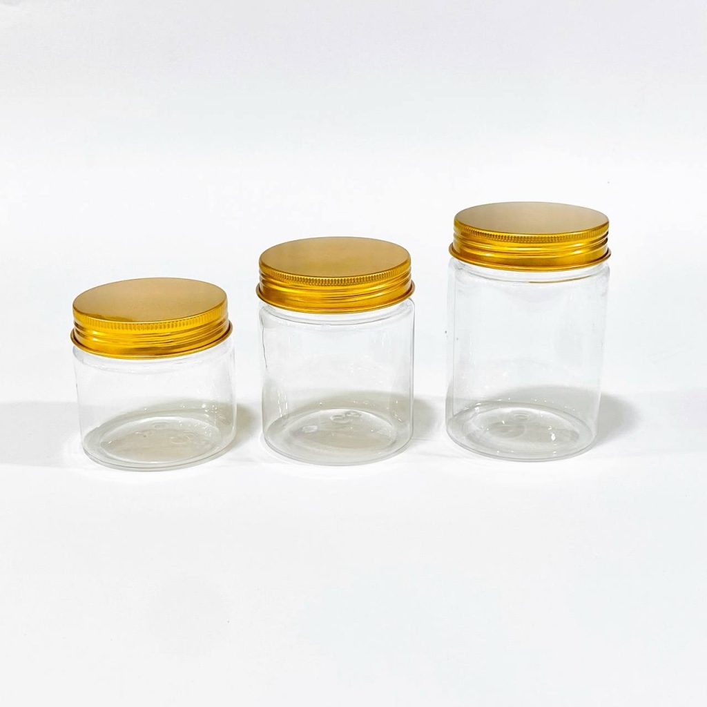 علب بلاستيك شفافة لحفظ المنتجات والكريمات غطاء فضي حجم 100 & 200 مل