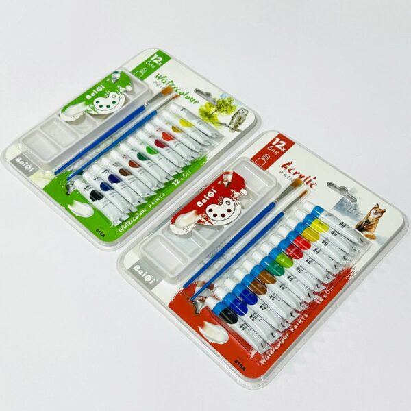 طقم الوان اكريليك & مائية 12 لون مع صحن تخليط وفرش من BeiQi