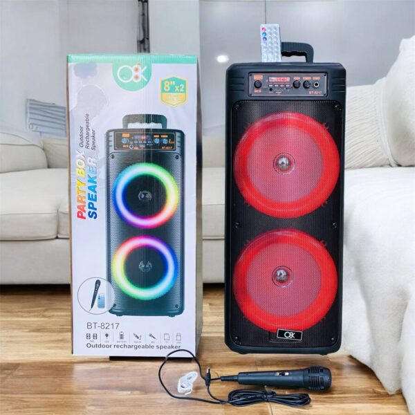 مكبر صوت بلوتوت مع مايك حجم كبير 2 سبيكر 8 انش مناسب للأماكن المفتوحة والمغلقة