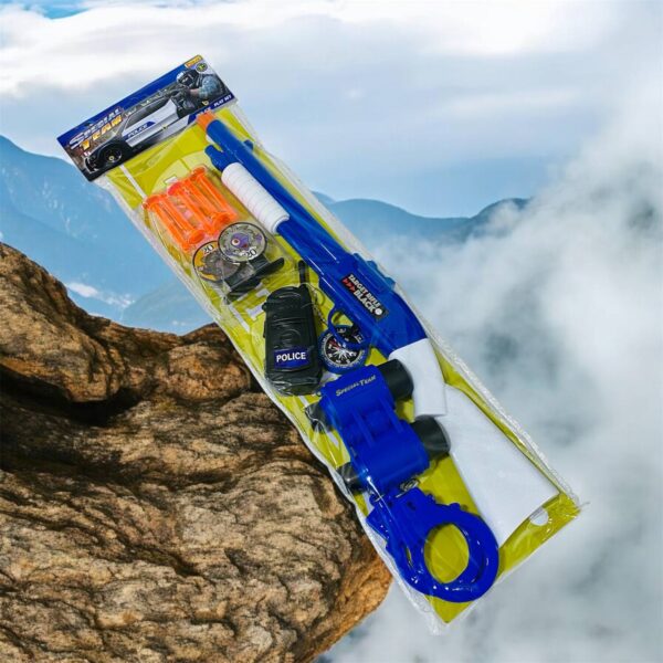 لعبة طقم شرطة بندقية اطلاق اسهم لاصقة مع 11 قطعه غير ضارة للأطفال