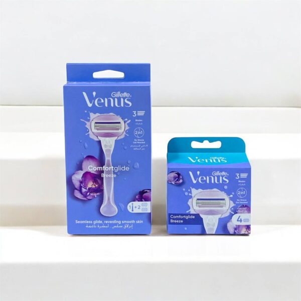 شفرات الحلاقة جيليت فينوس مع رأس اضافي بدون الحاجه لجل الحلاقة ، بشرة ناعمة وانزلاق سلس – غيار شفرات