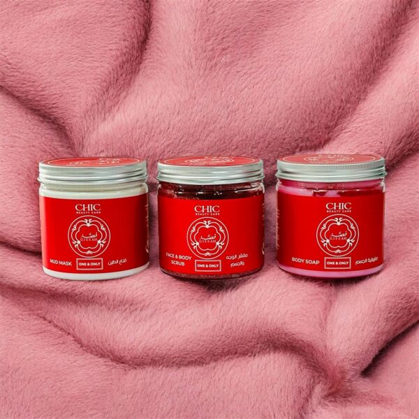 مجموعة قصة للعناية بالوجة و الجسم ، صابونية جسم ،مقشر الوجه و الجسم ، قناع الطين عبوة 521 مل
