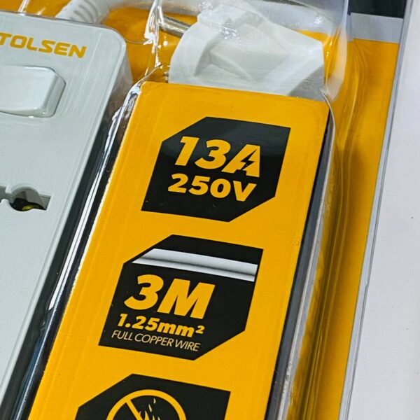 مطول كهربائي ممتاز 3 متر ، سلك نحاس كامل مع زر فتح واغلاق TOLSEN