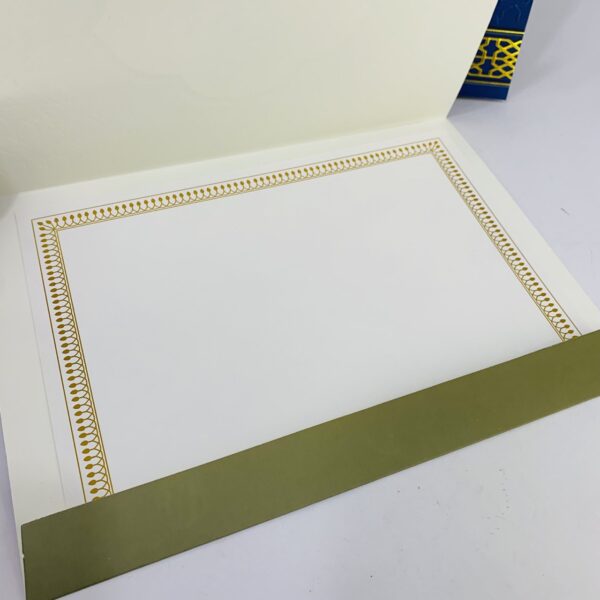 شهادة شكر وتقدير كرت مقوى مع ورقة A4 مزخرفة