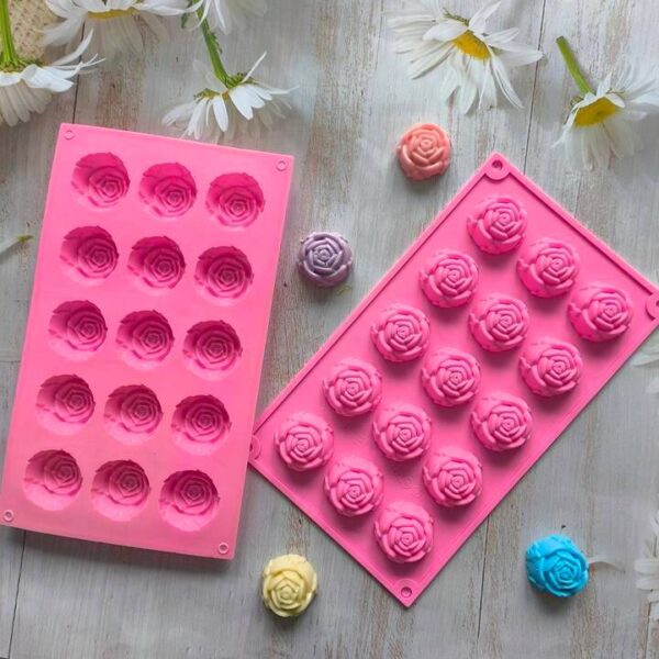 قالب سيليكون على شكل زهرة جوري 15 تجويف لصنع قطع الصابون والشموع والحرف اليدوية MA93