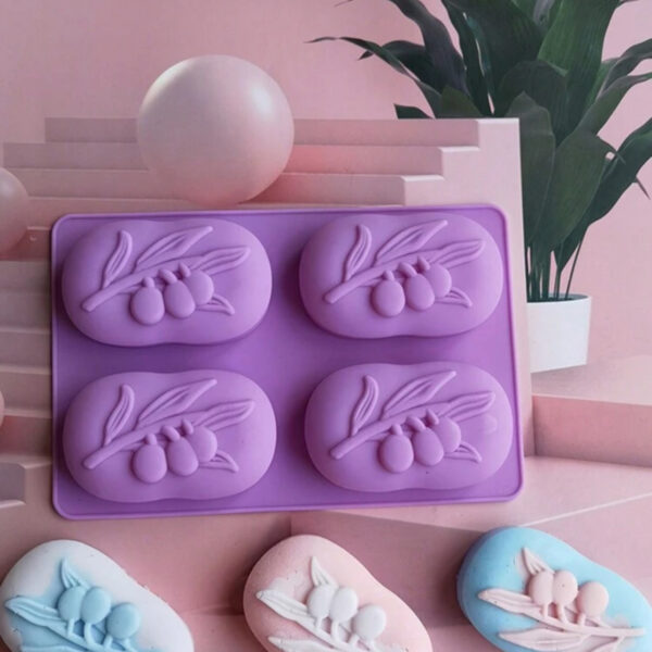 قالب سيلكون مكون من 4 فتحات بشكل شجرة الزيتون لصنع الصابون WFHM77