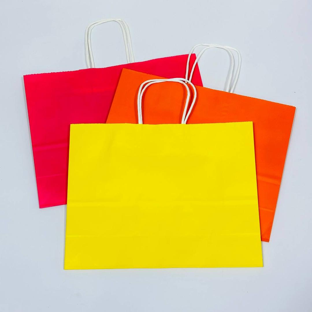 أكياس ورقية بألوان زاهية وأنيقة وحجم مناسب .