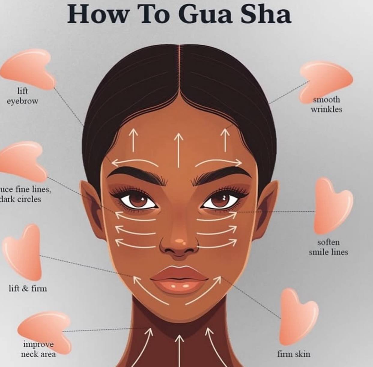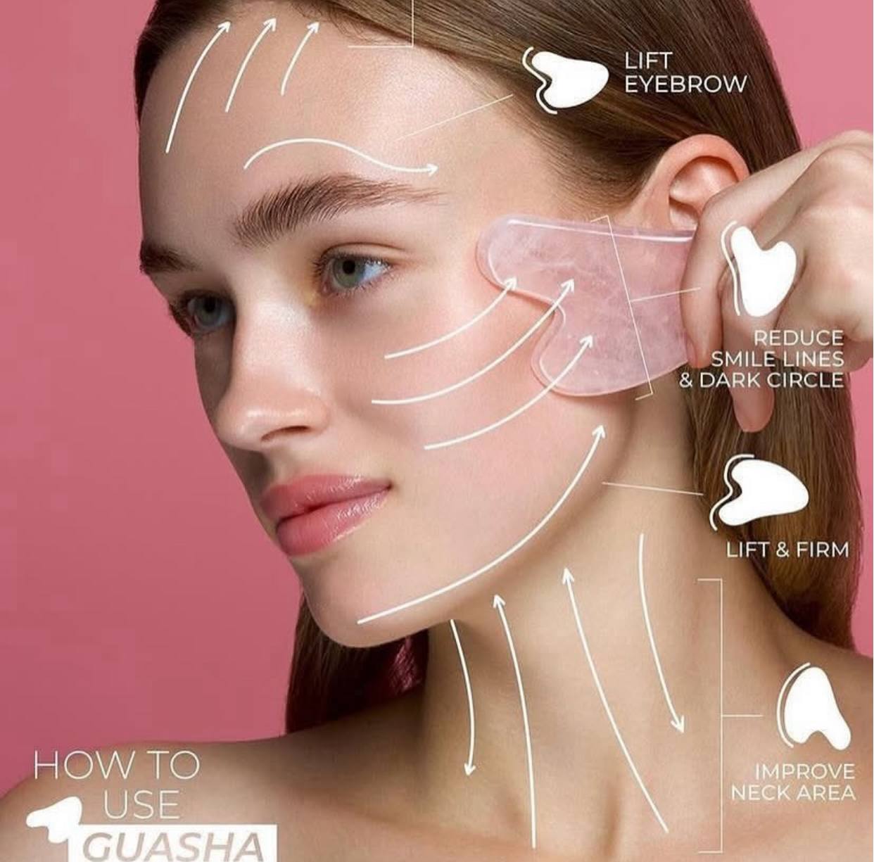 - غواشا للوجه هي أداة تدليك تقليدية صينية تستخدم لتحسين مظهر وملمس البشرة . تعمل على تحفيز الدورة الدموية، وتقليل الانتفاخ، وشد الجلد، وتحسين امتصاص منتجات العناية بالبشرة .
