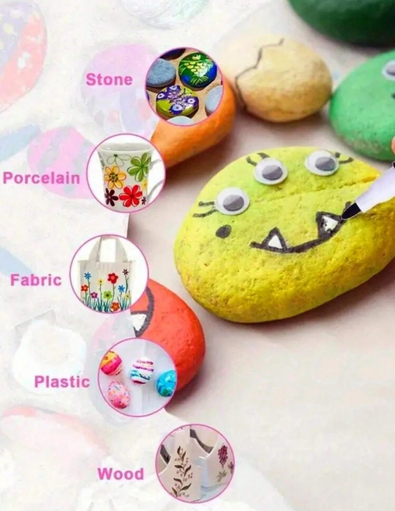 الوان اكريليك لرسم وتلوين اعمال الفنية اقلام تلوين بالماء مناسب لاعمال فن الكونكريت وزغرفة علي الشمع والرسم والبداع علي الاغلب الاسطح بما فيها الحجر والزجاج والخشب والخزف والاقمشة بدون رائحة وقابلة للغسيل