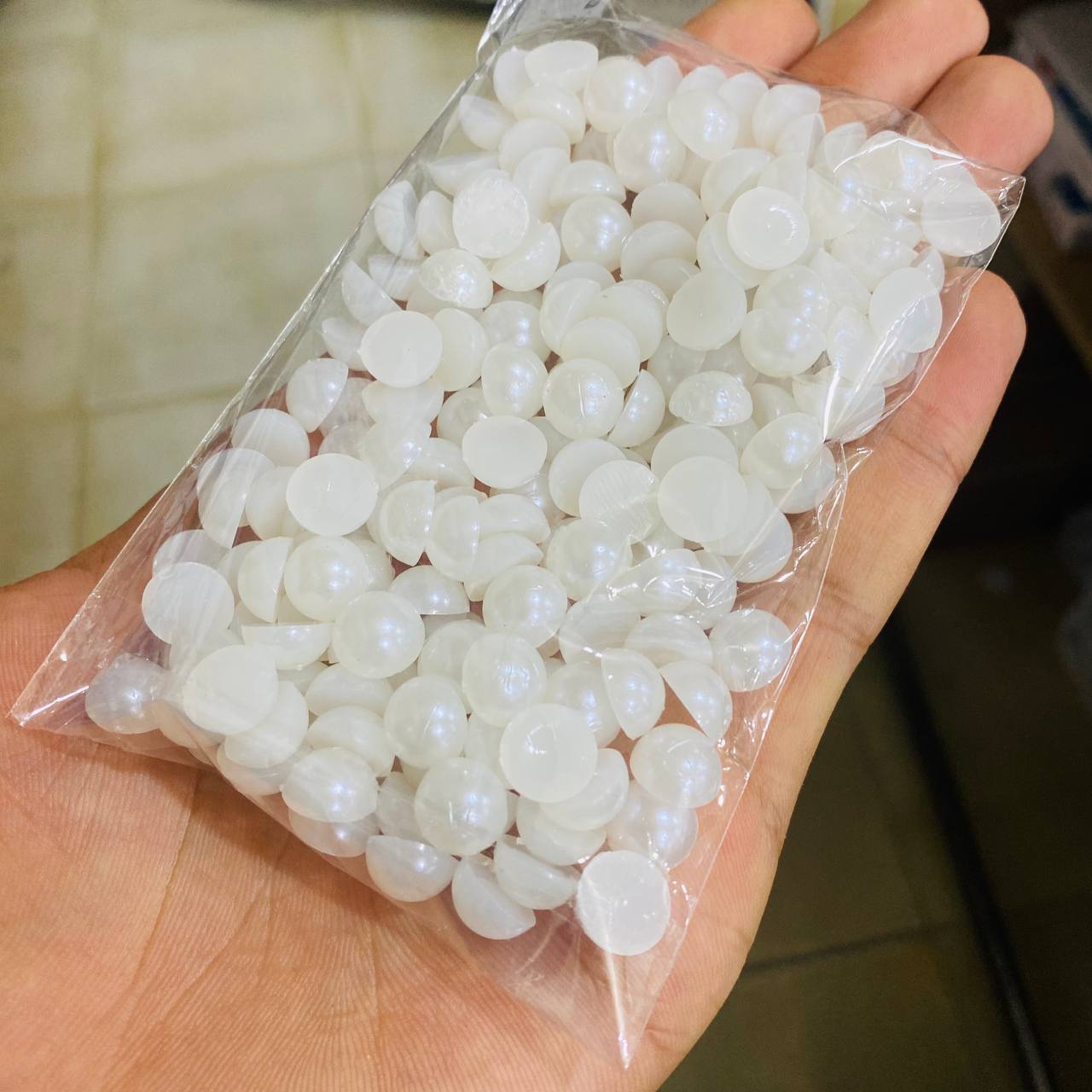 مجموع حبات لؤلؤ نصف دائري باللون الابيض والسكري بظهر مسطح 1 سم 200 حبة تقريبا