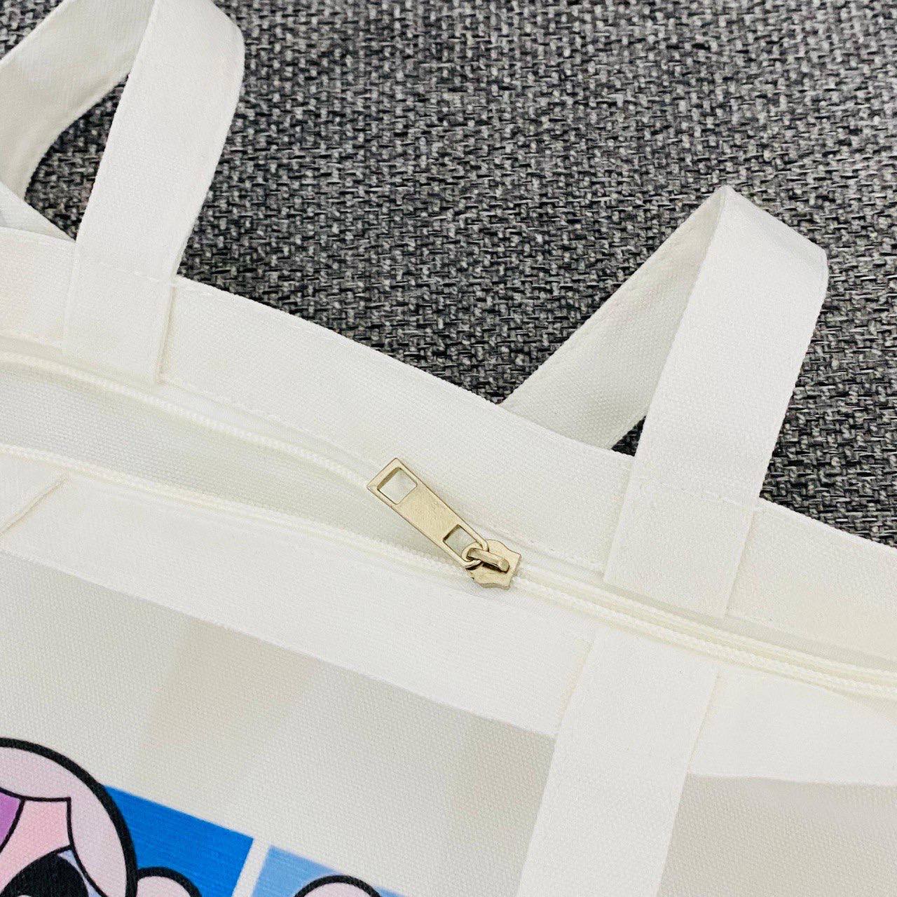 حقيبة توت باق فتيات القوة لون ابيض مع سوستة – مناسبة للدورات والكلية