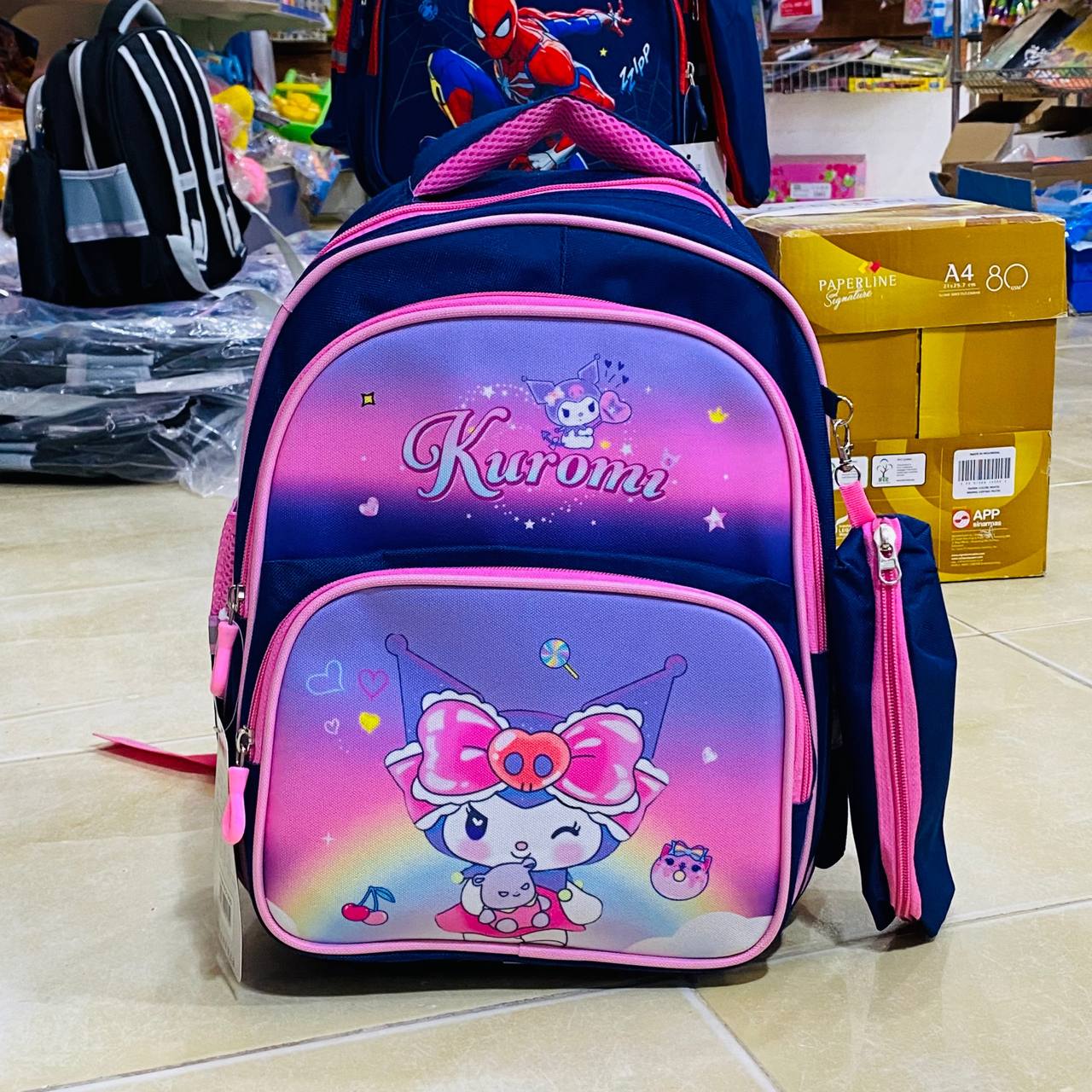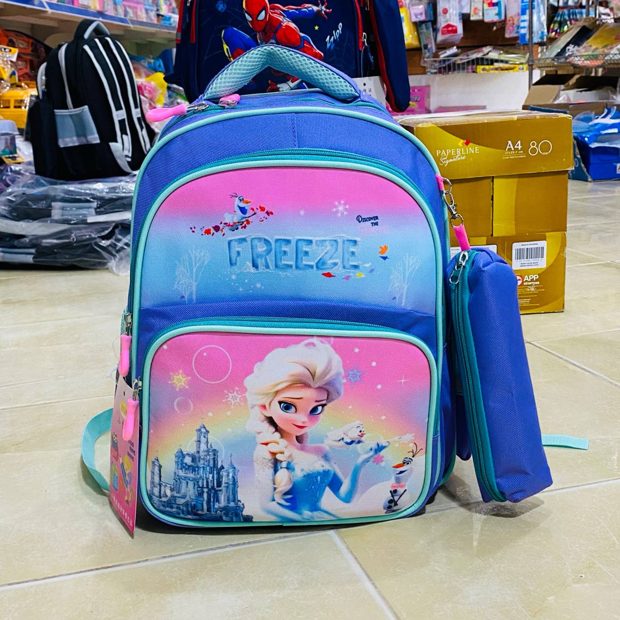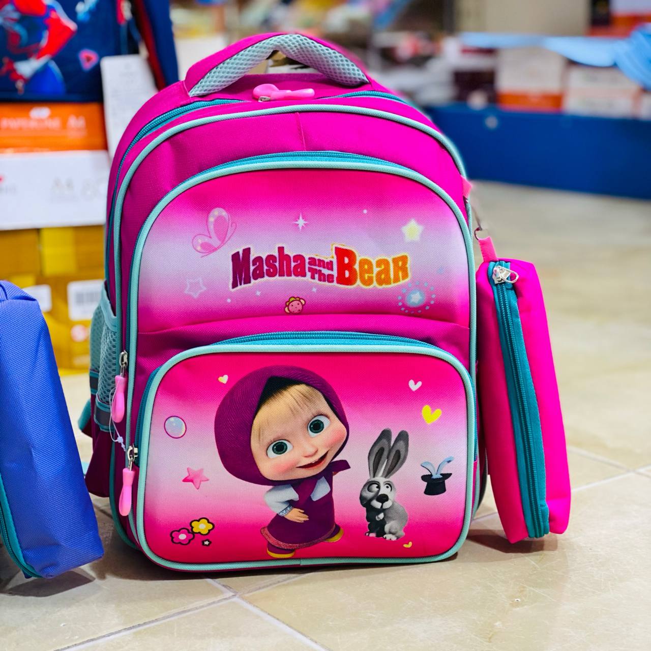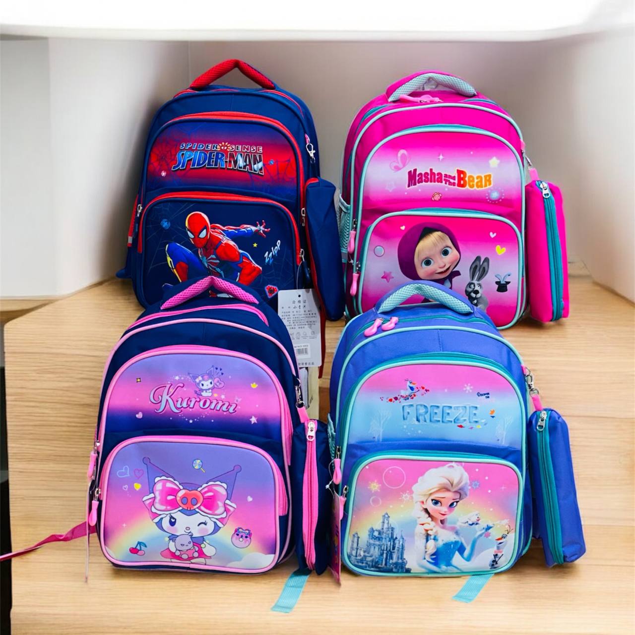 حقيبة صف اول وروضة مع مقلمة ، شخصيات الاطفال ، 3 جيوب أساسية