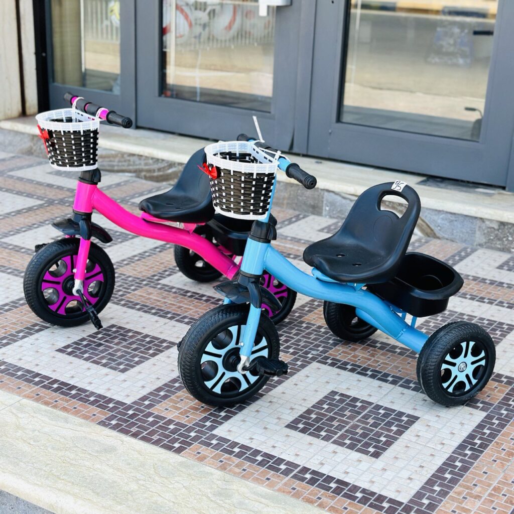 دراجة اطفال ثلاثية حديد مع سلتين للأعمار من سنتين إلى 6 سنوات
