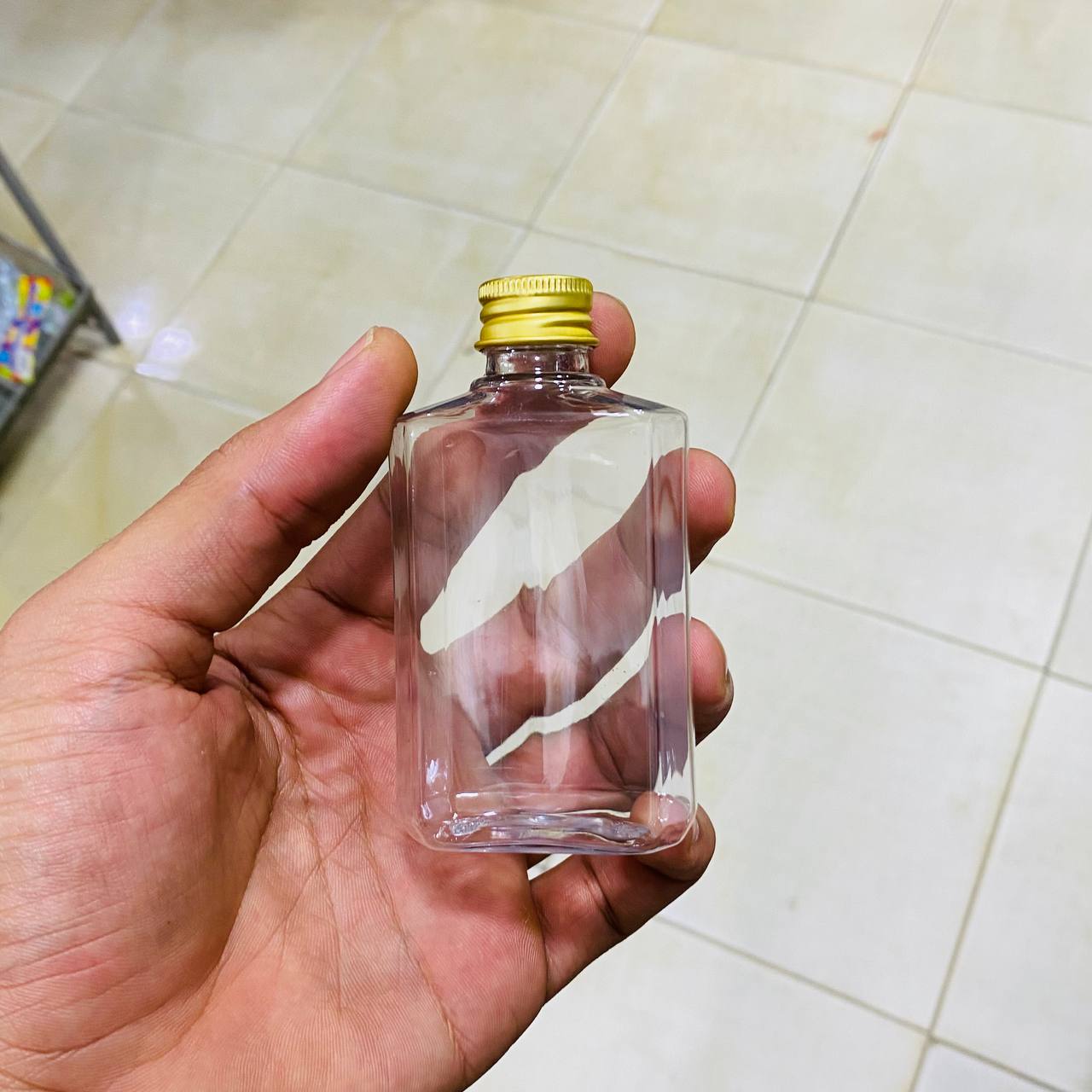 دستة علب بلاستيك مستطيلة شفافة 100 مل 12 شيشة غطاء ذهبي متعددة الاستعمالات