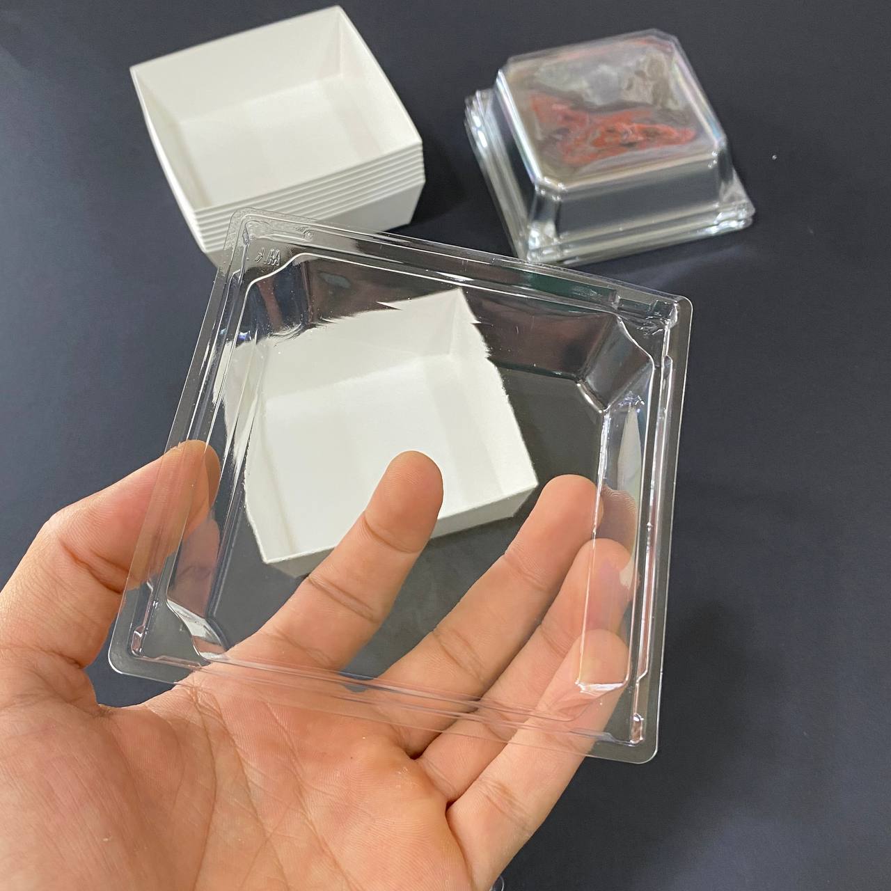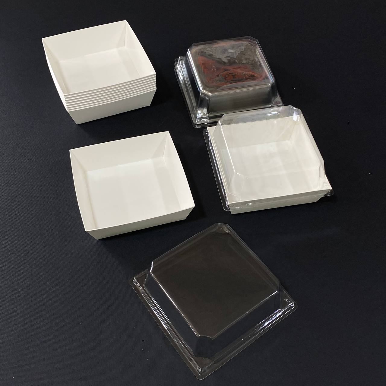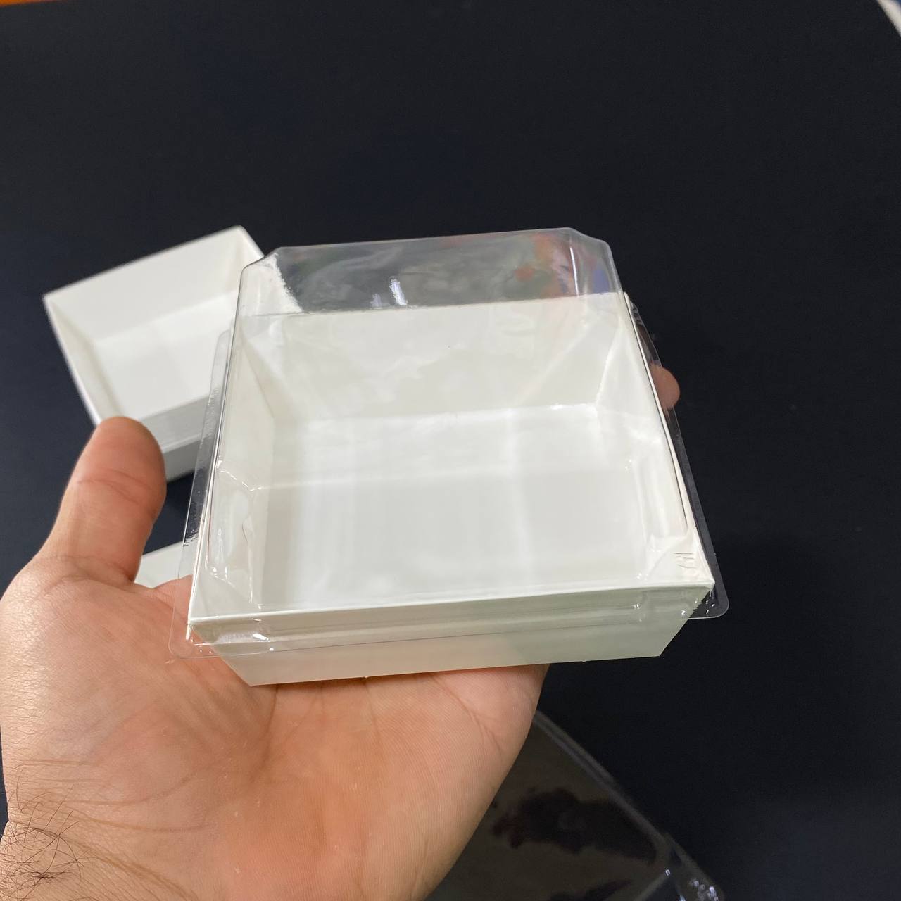 دستة 10 علب بيضاء غطاء بلاستيك متعدد الاستعمال للكيك وتوزيعات خلوط العيد والمناسبات