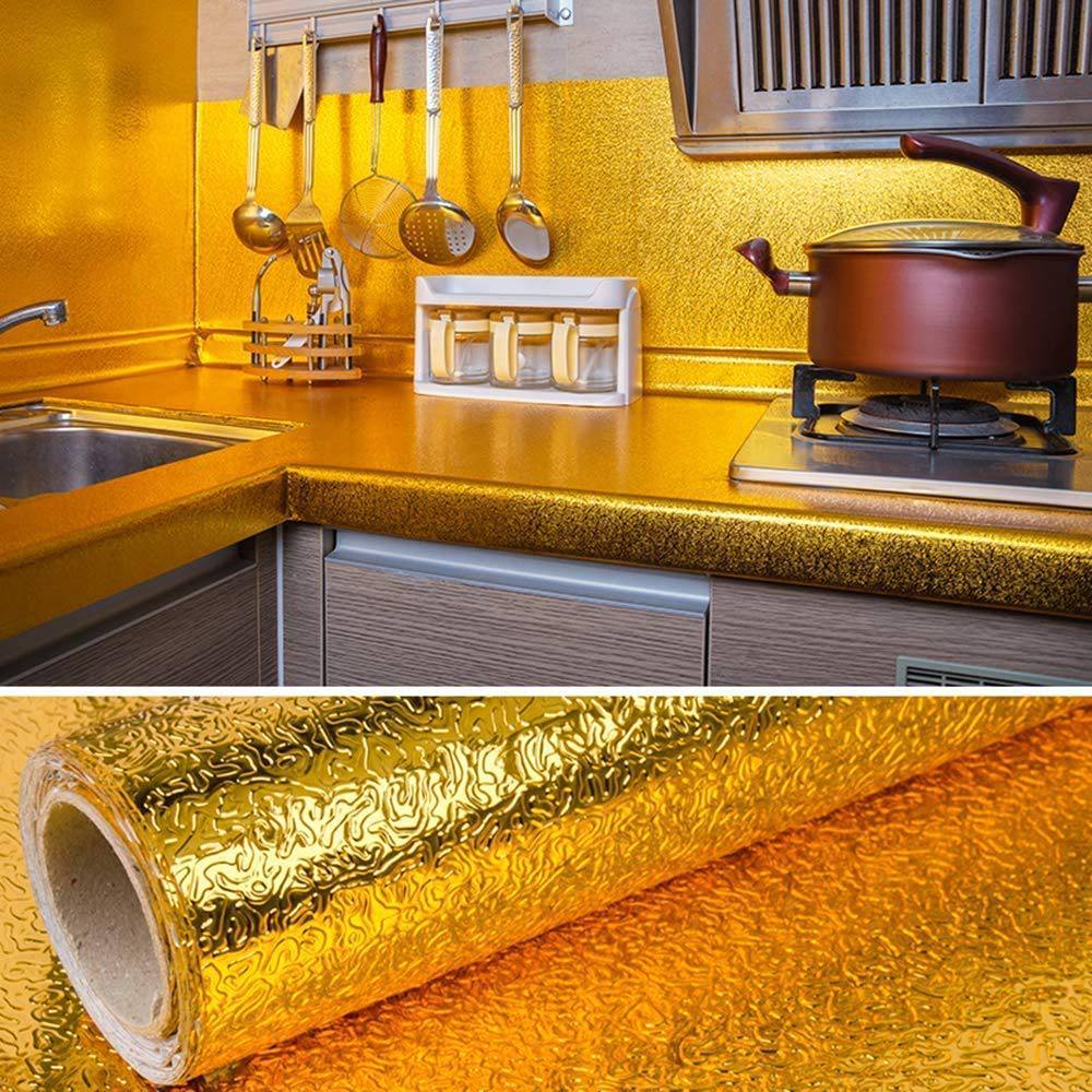 رول المنيوم لاصق مقاوم للرطوبة ومضاد للتلوث مناسب للمطبخ والطاولات لون فضي / ذهبي