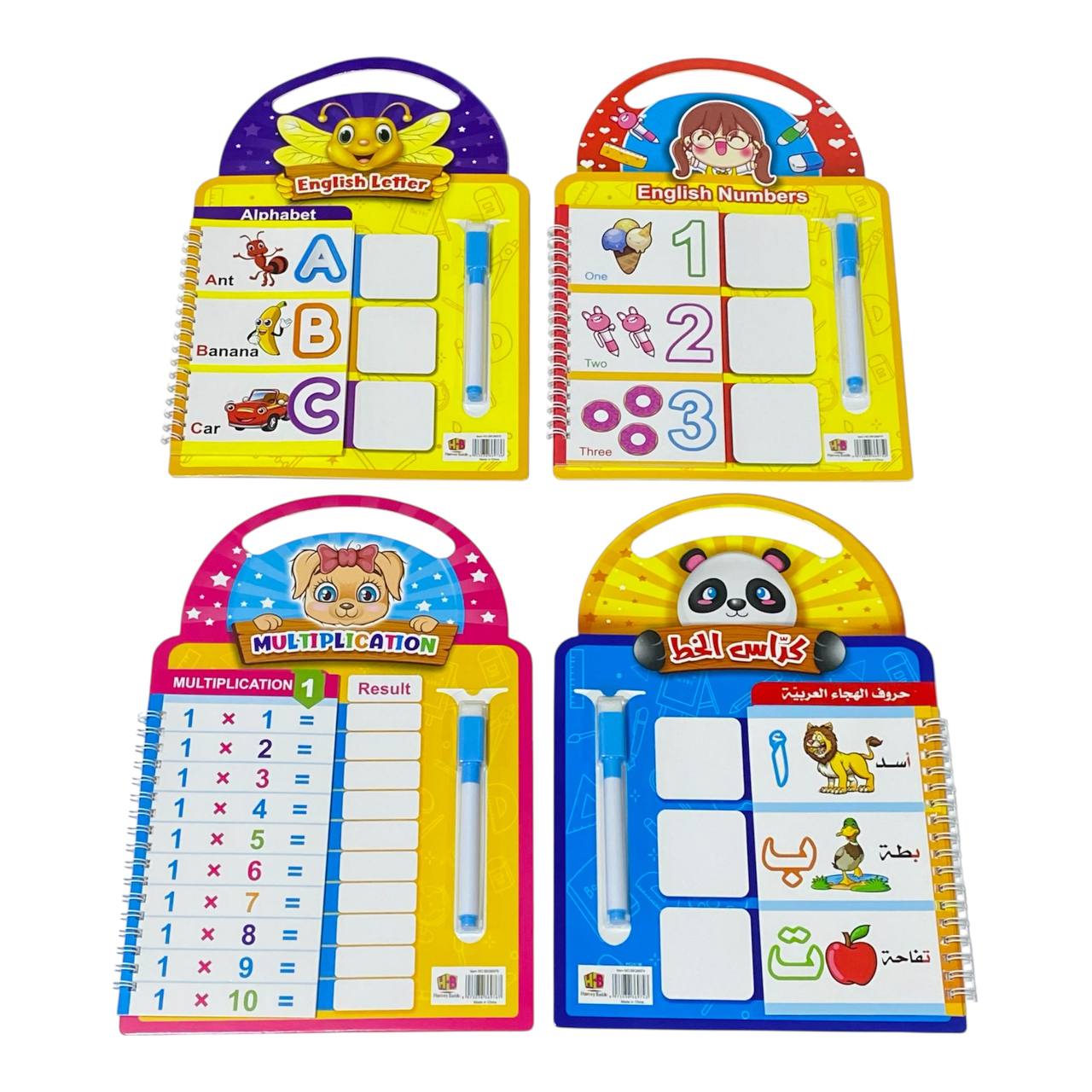 سبورة تعليمية مع خطاط ، اكتب وامسح ، تعليم الحروف العربية / الانجليزية / جدول ضرب / الارقام