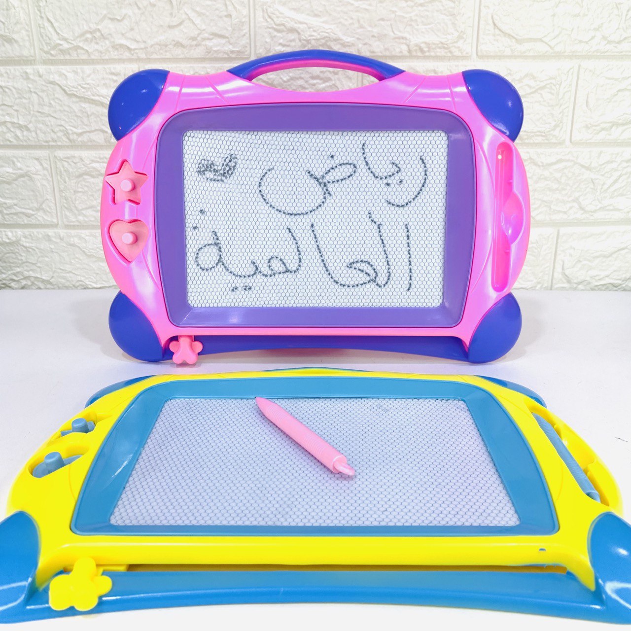 - سبورة سحرية تكتب باستخدام قلم بسن مغناطيس مثل كتابة قلم رصاص وتمسح بكل سهولة معها اشكال نجمه وقلب
