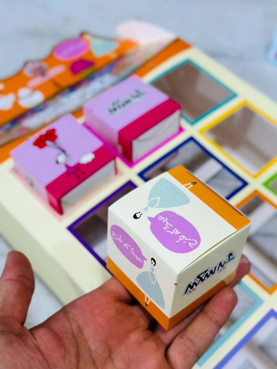 - مقاس كل بوكس 6*6*6 سانتي مناسبة لوضع قطع الشكلاطة الصغيرة