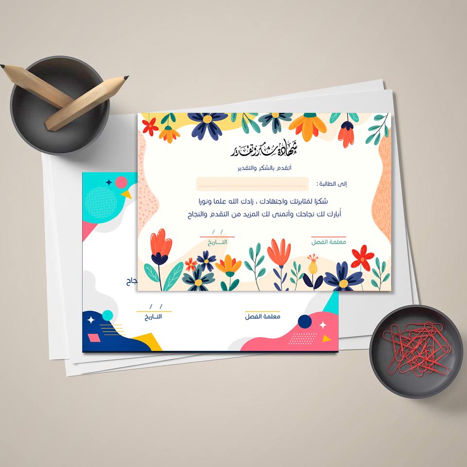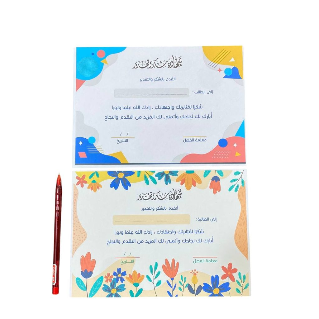 شهادة شكر وتقدير للطلبة مقاس A5 شكرا لمثابرتك من معلمة الفصل