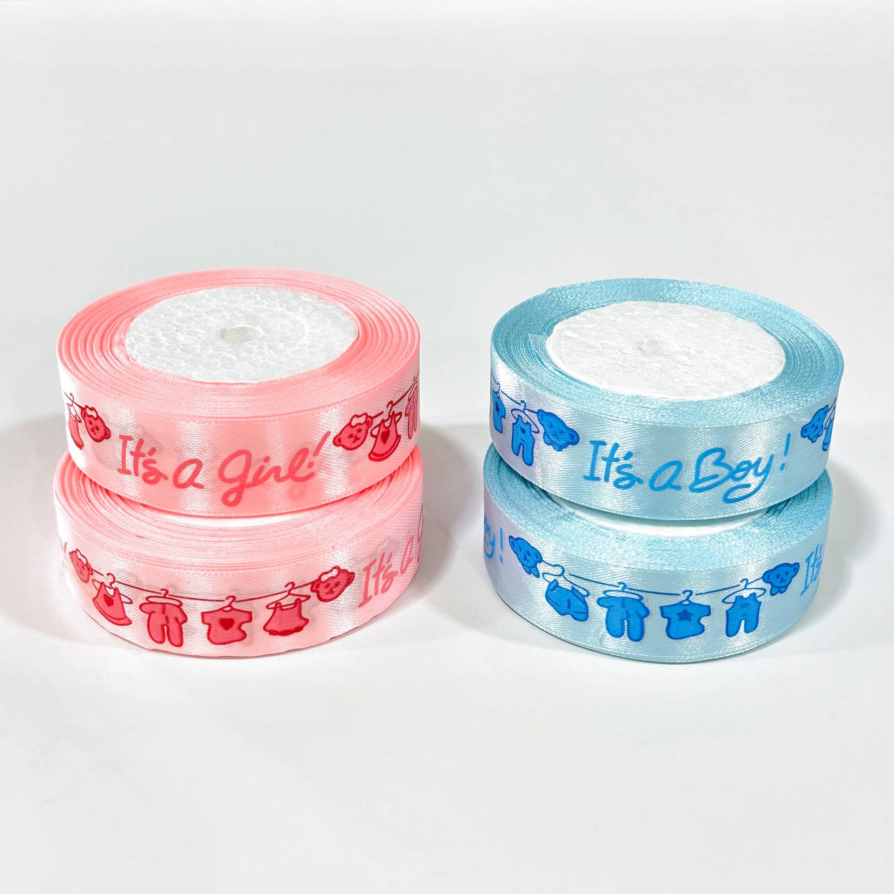 - شريط ساتان لربط وتغليف بوكسات وتغليفات البيبي بالديكور الازرق او الوردي