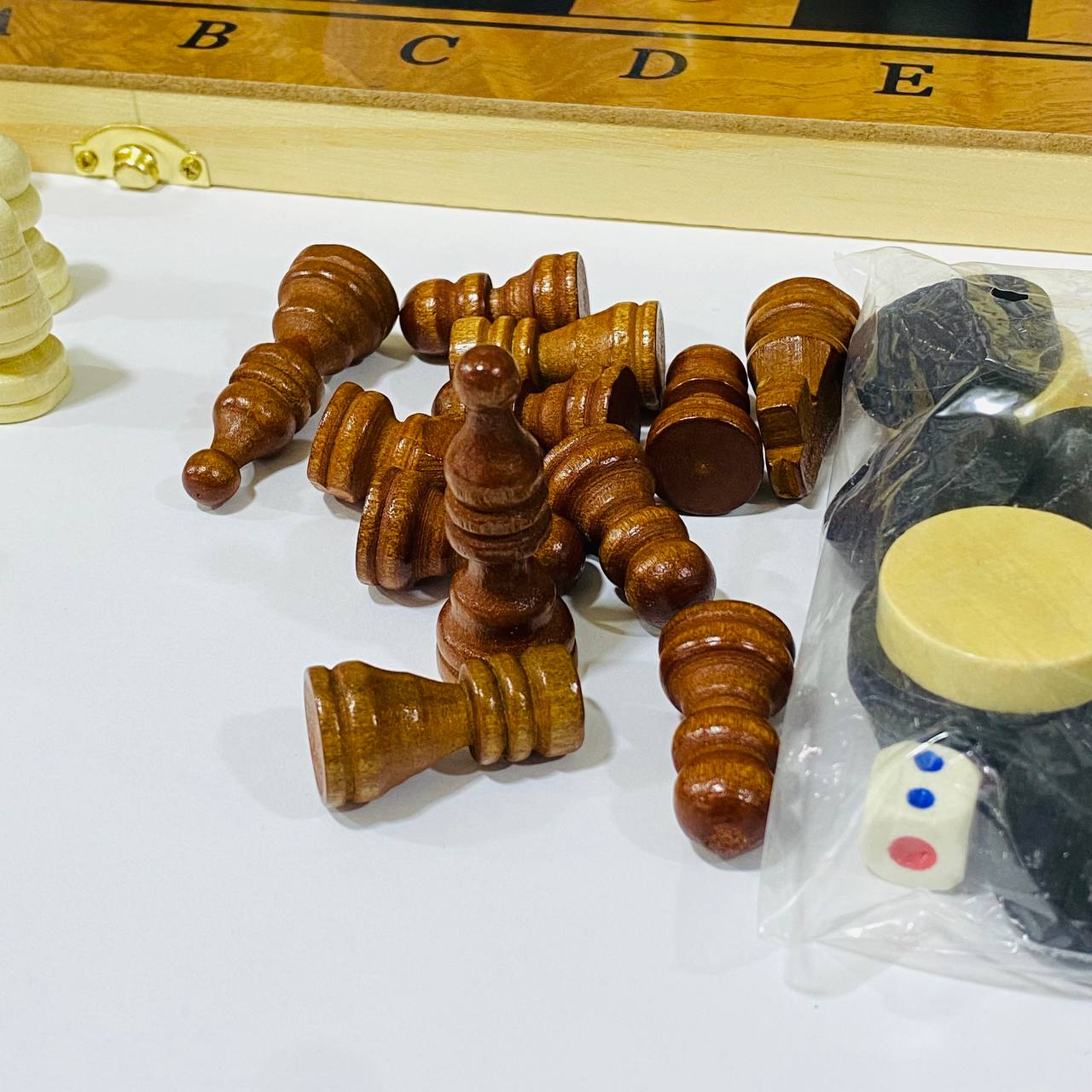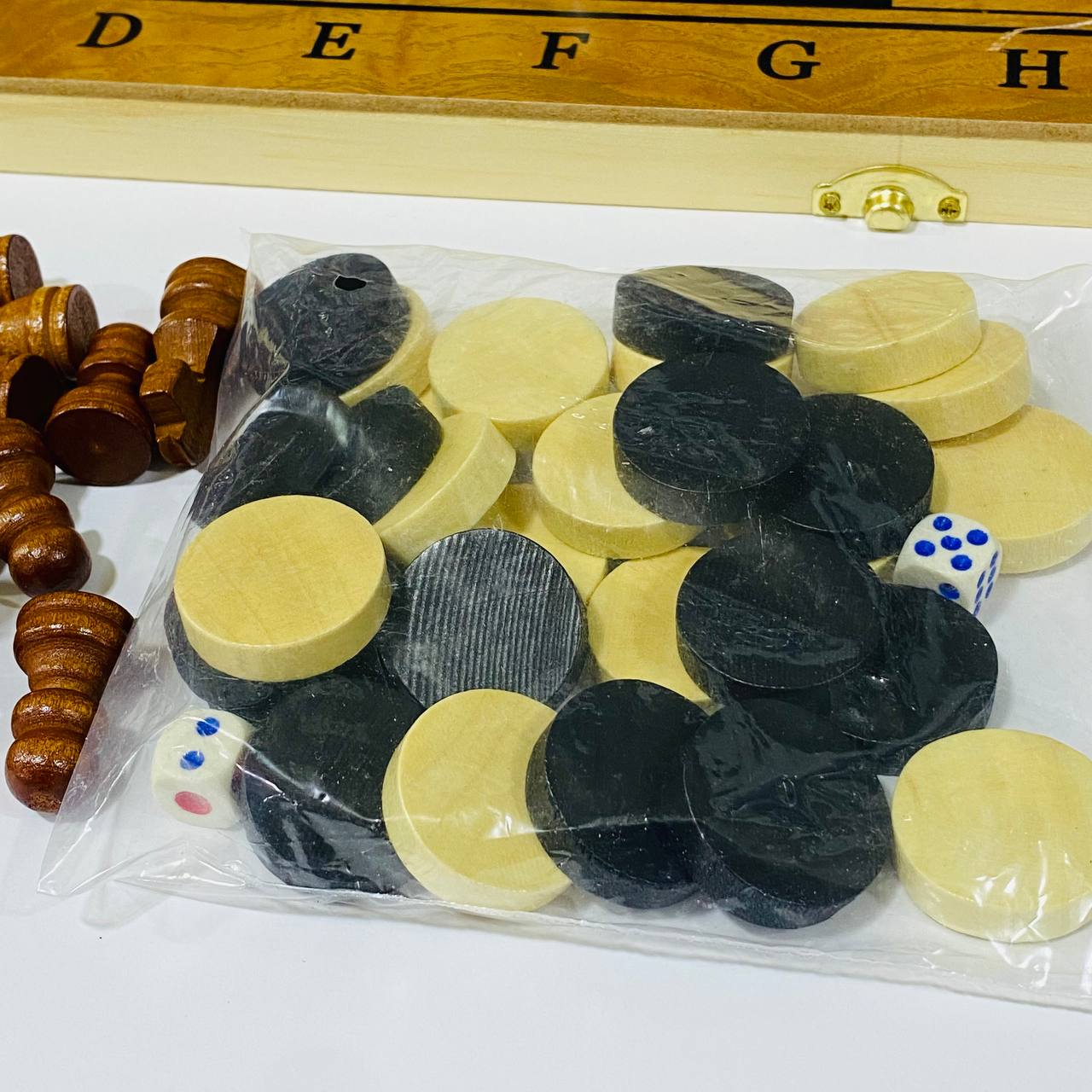 شطرنج خشبي 3 العاب في 1 مع داما و لعبة طاولة للجمعات العائلية