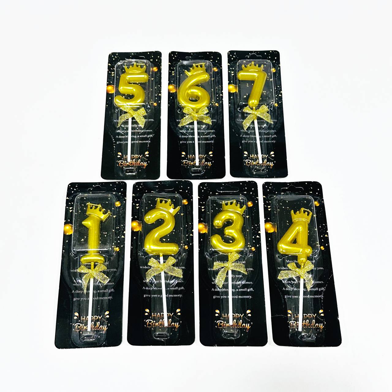 - شمع أرقام بتاج ذهبيأضف لمسة من الفخامة والتألق إلى حفلتك مع شمع الأرقام بتاج ذهبي. هذه الشموع الراقية مصممة بشكل أنيق على شكل أرقام مزينة بتاج ذهبي، مما يجعلها الخيار المثالي لتزيين كعكات أعياد الميلاد والمناسبات الخاصة.الميزات: