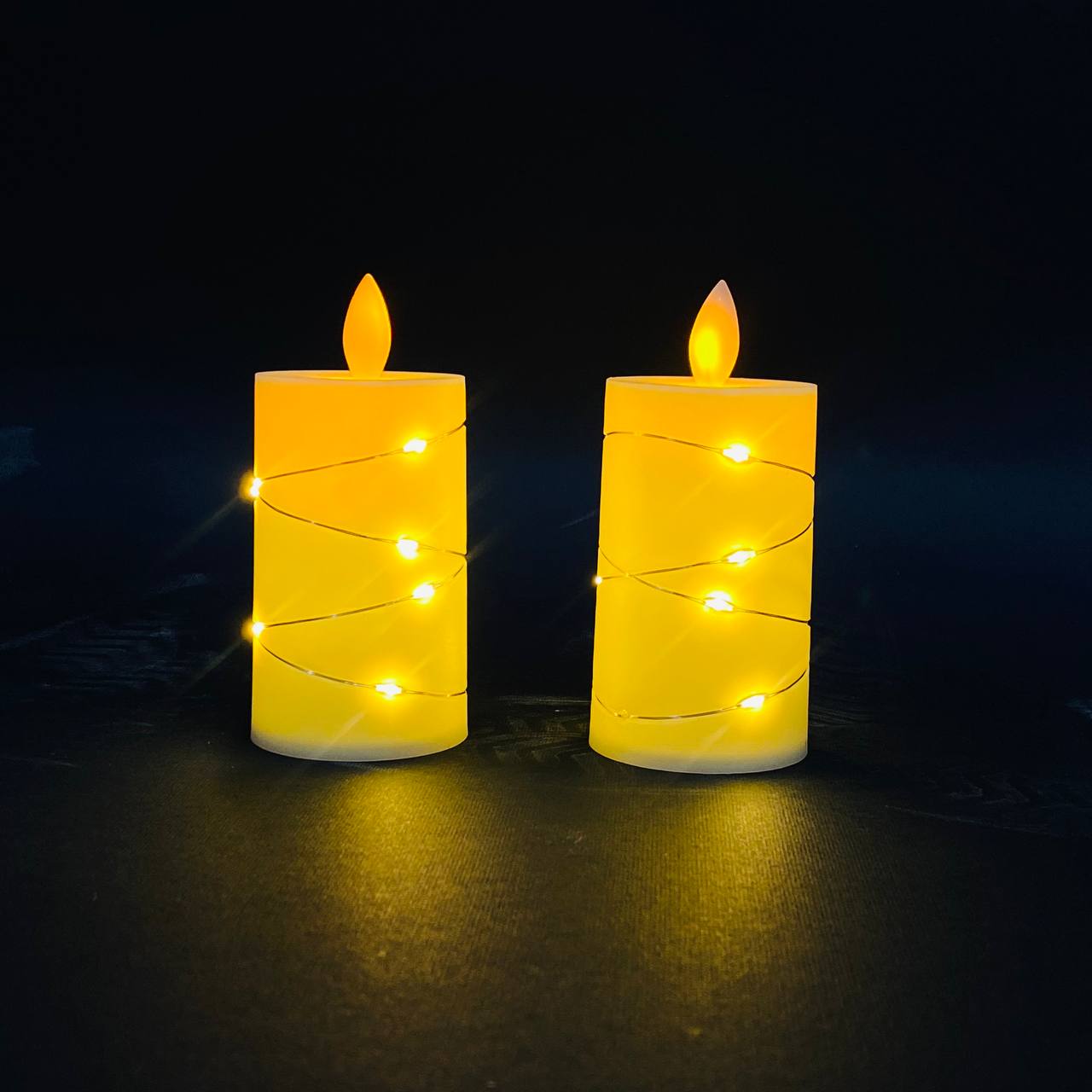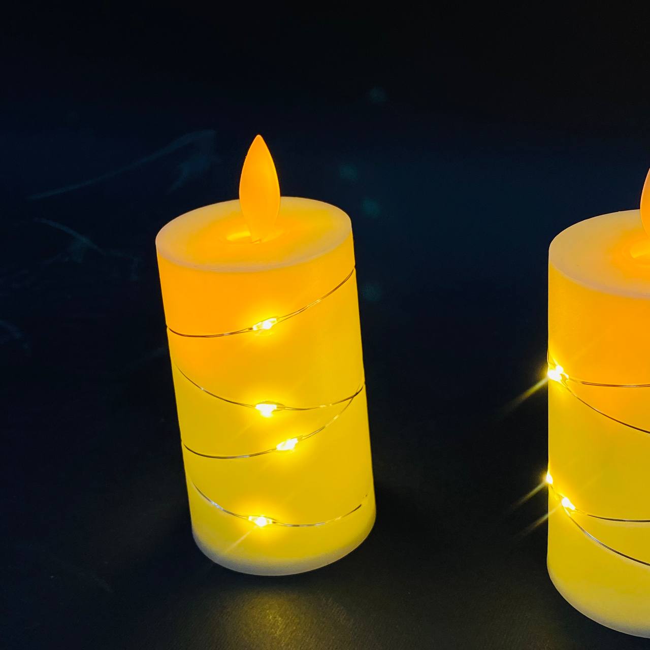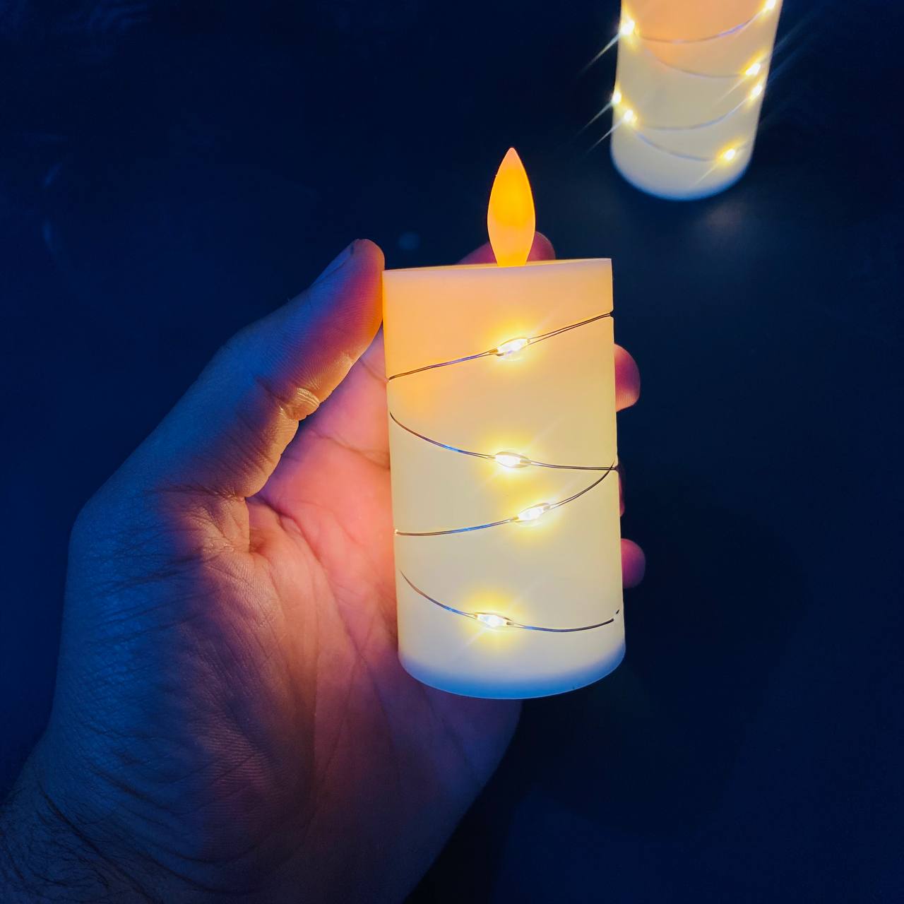 شمعه رومانسية صناعية مع سرب اضاءة عاطفي عليها لديكور المنزل واجواء العشاء تشتغل بالبطارية