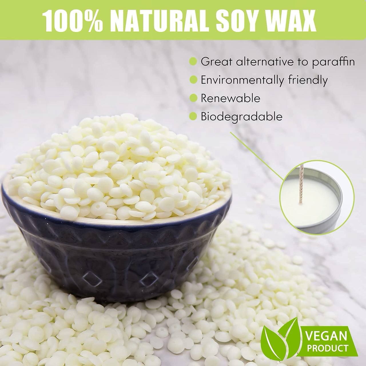 شمع الصويا طبيعي 100% 1 كيلو حبيبات لصناعة الشموع سهل المزج مع العطور والألوان WFHM77