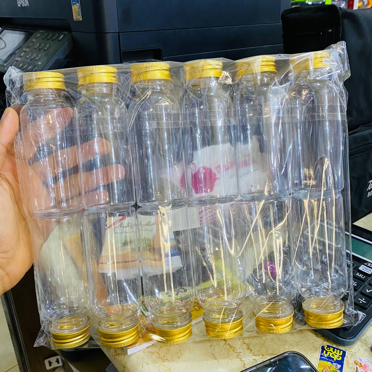 دستة 12 شيشة توزيعات مناسبة 200 مل غطاء ذهبي للحفلات والأفراح