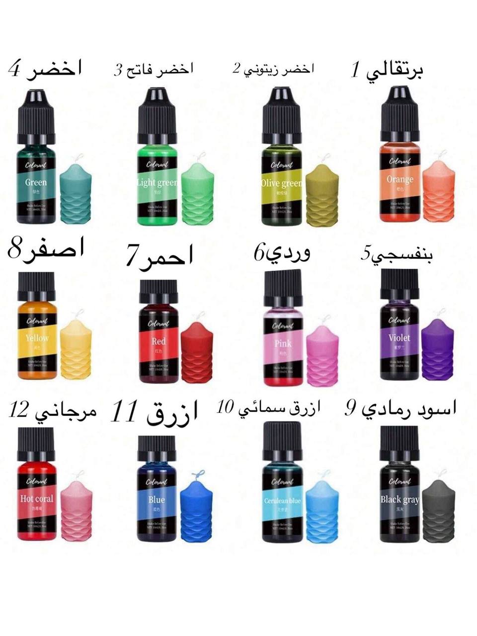 صبغة الشمع السائلة 12 لون عالية التركيز لشمع الصويا والنخيل وجل والبرافين وشمع النحلي 10 مل WFHM77