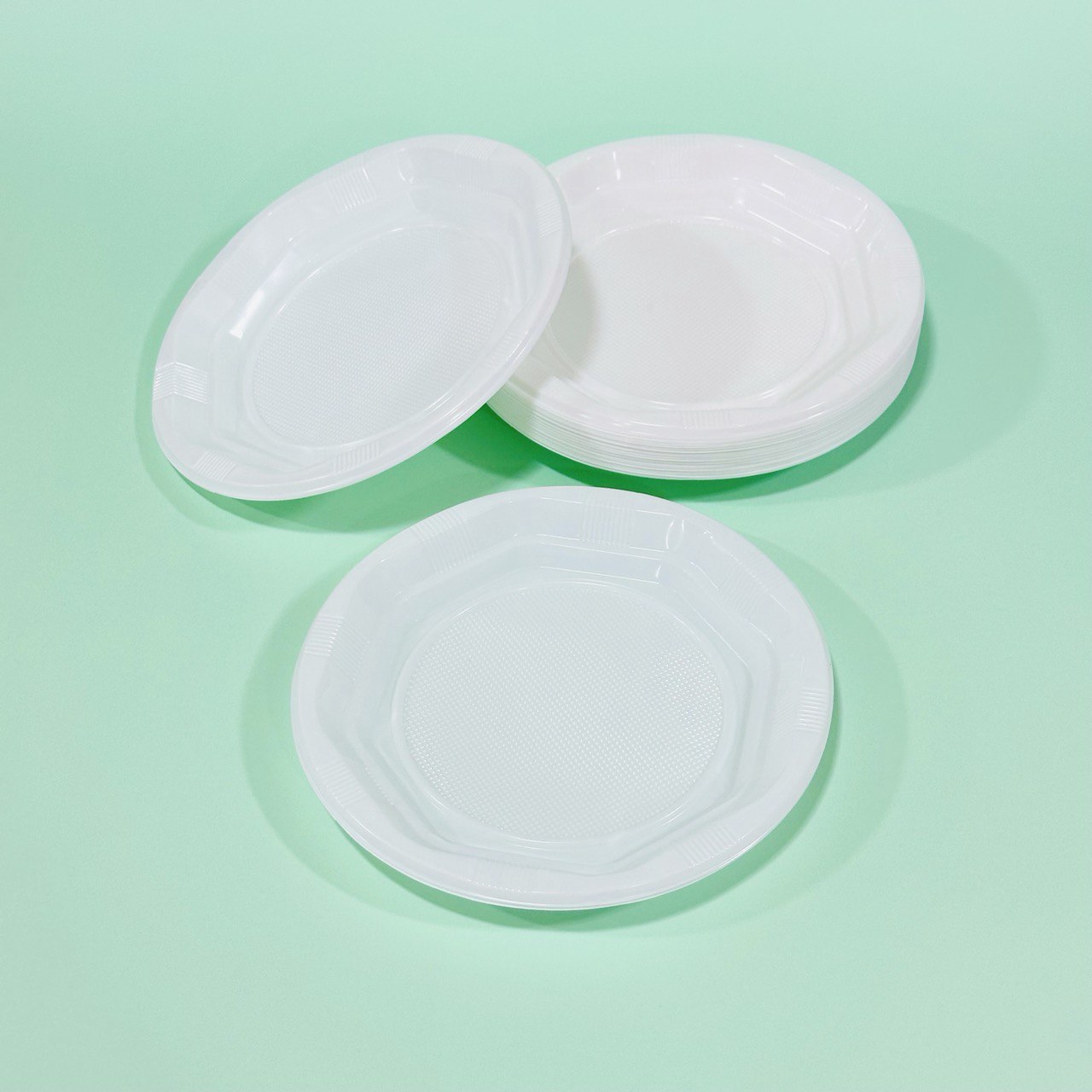 صحون بيضاء بلاستيك للمناسبات والجمعات العائلية 50 صحن