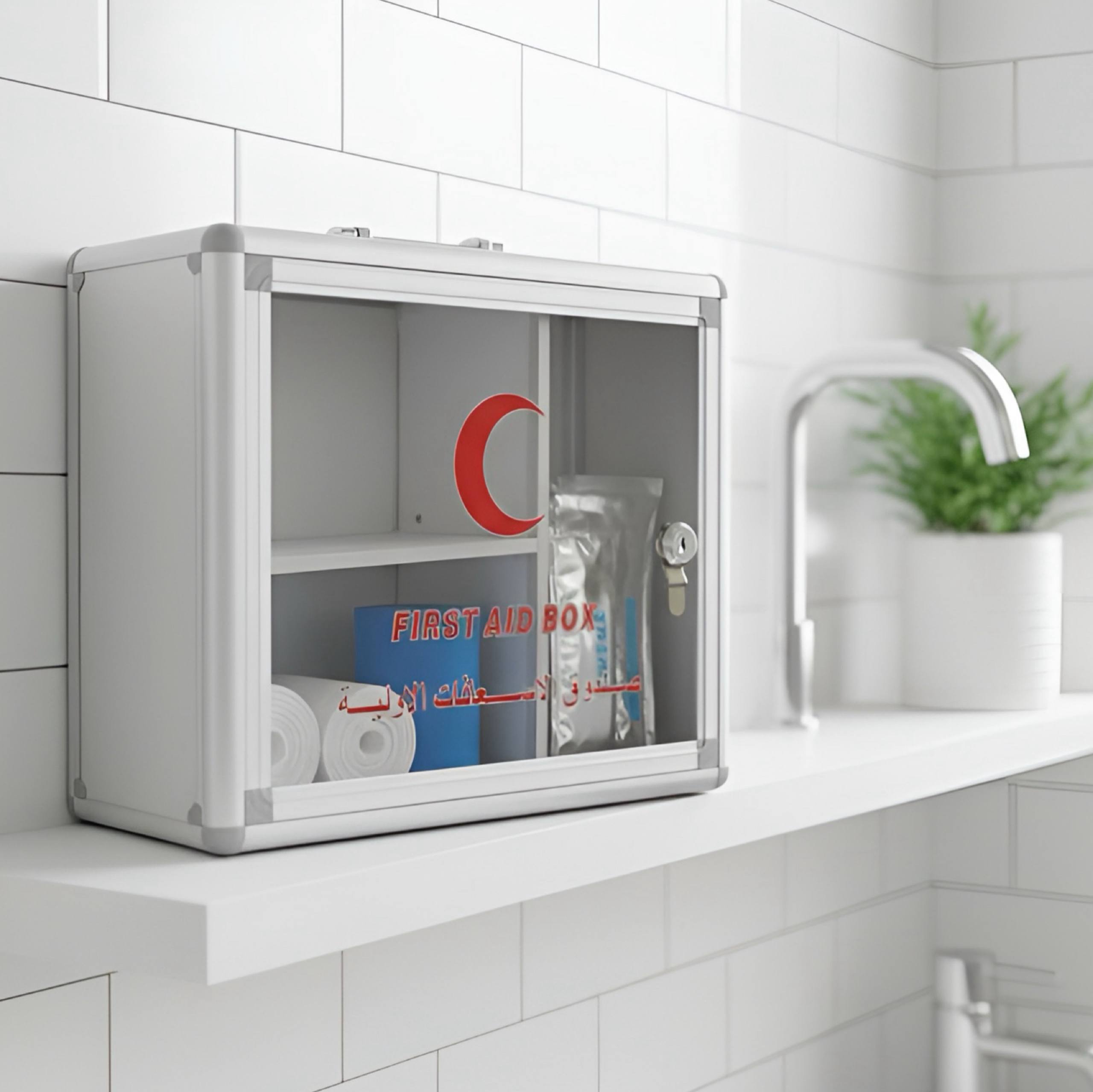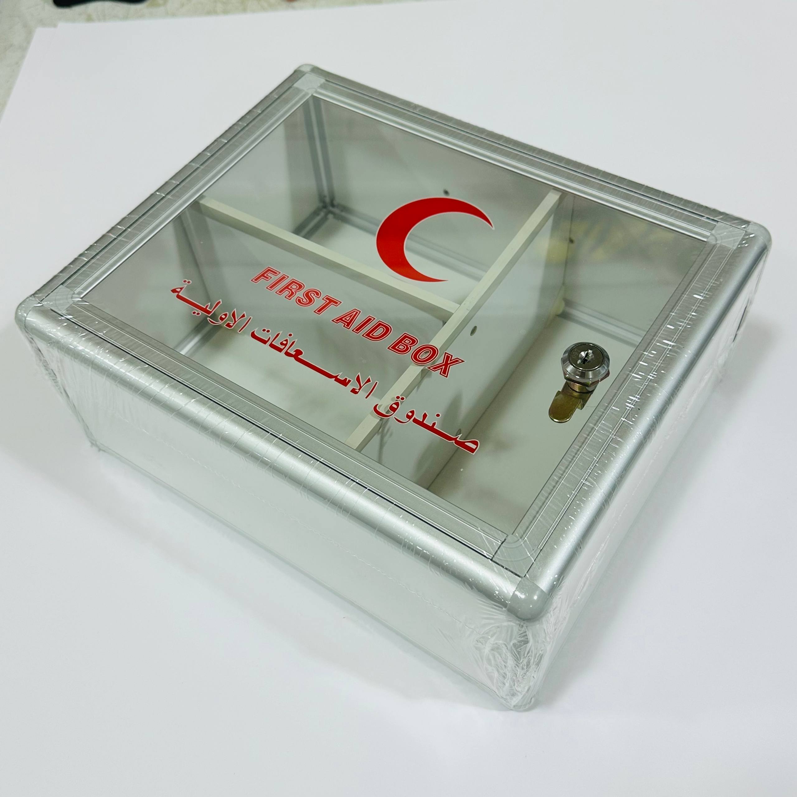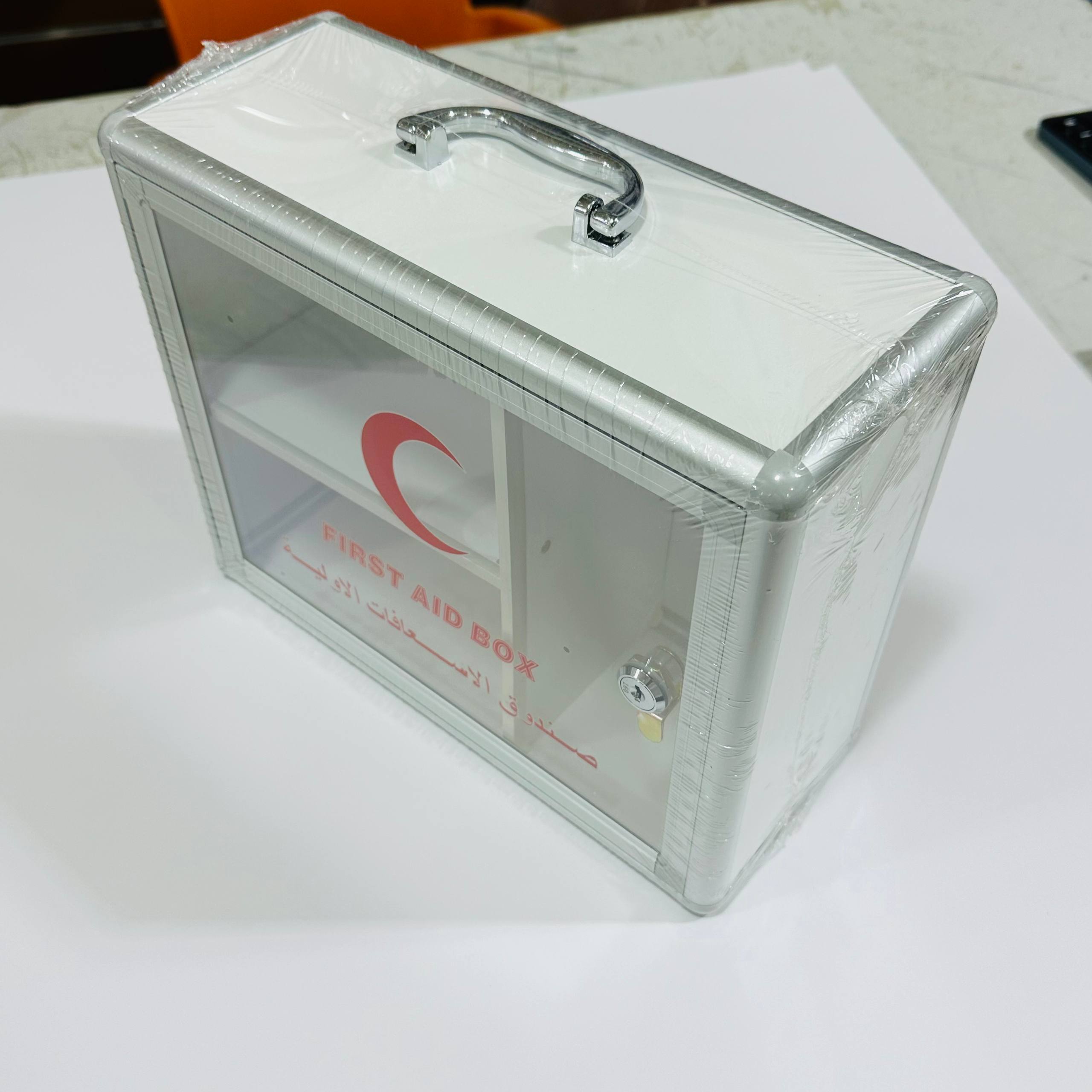 صندوق الإسعافات الأولية – للمنزل والمدرسة مع قفل ومفتاح قابل للحمل والتثبيت على الحائط