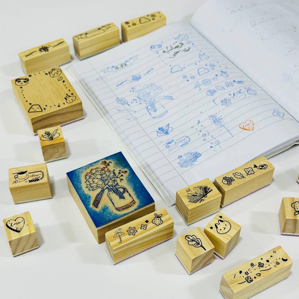طقم اختام خشبية راقية لمحبين الزينة والآرت جورنال