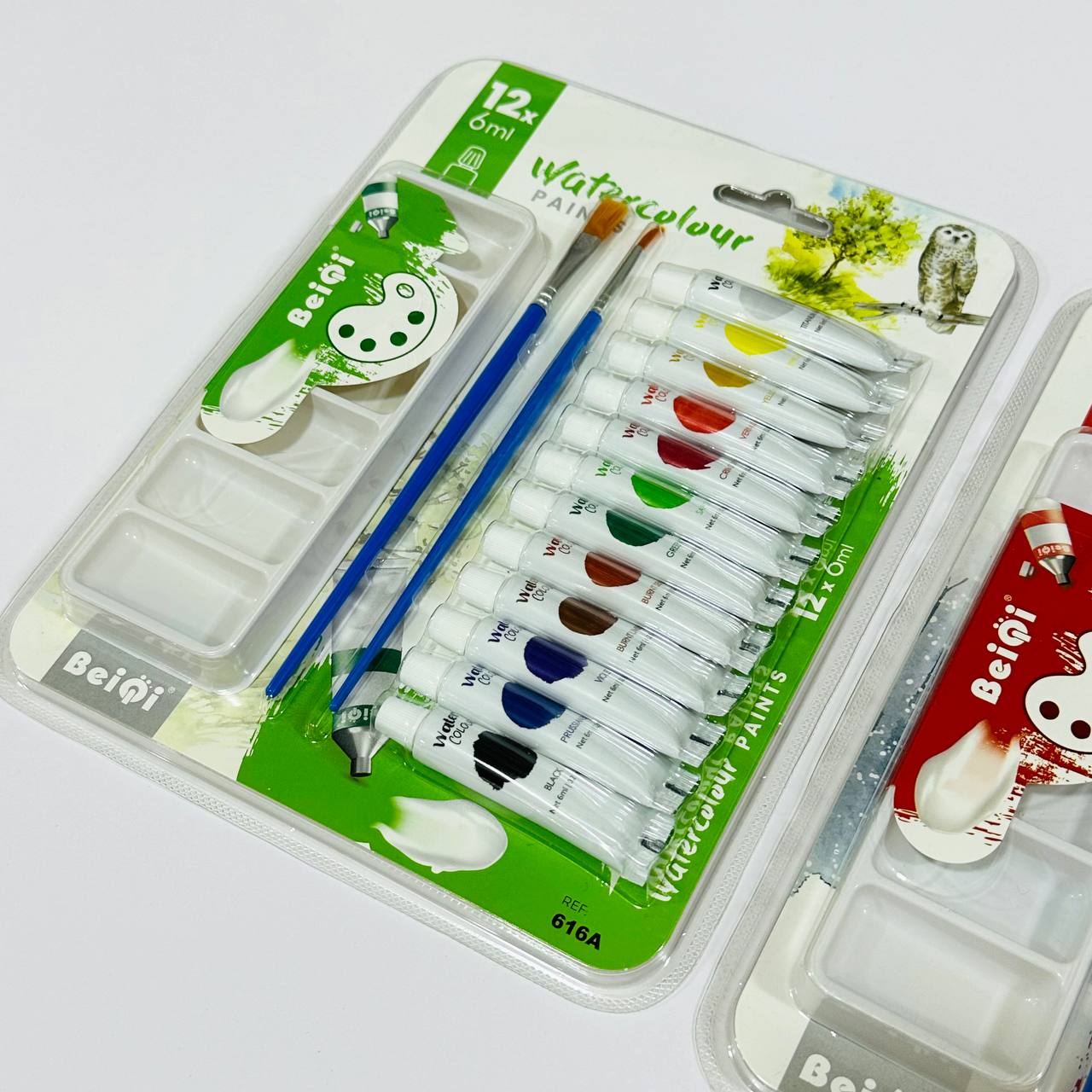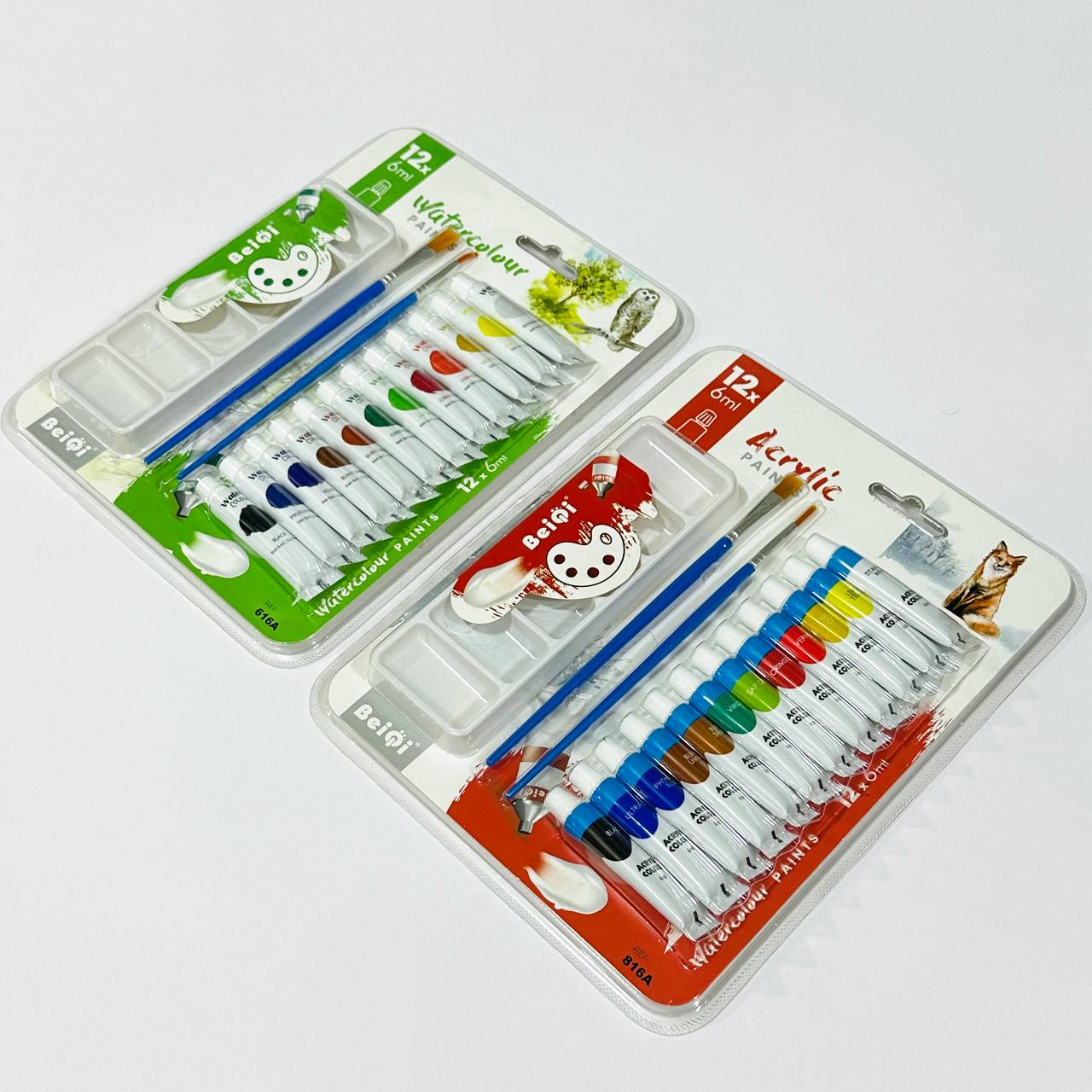 طقم الوان اكريليك & مائية 12 لون مع صحن تخليط وفرش من BeiQi