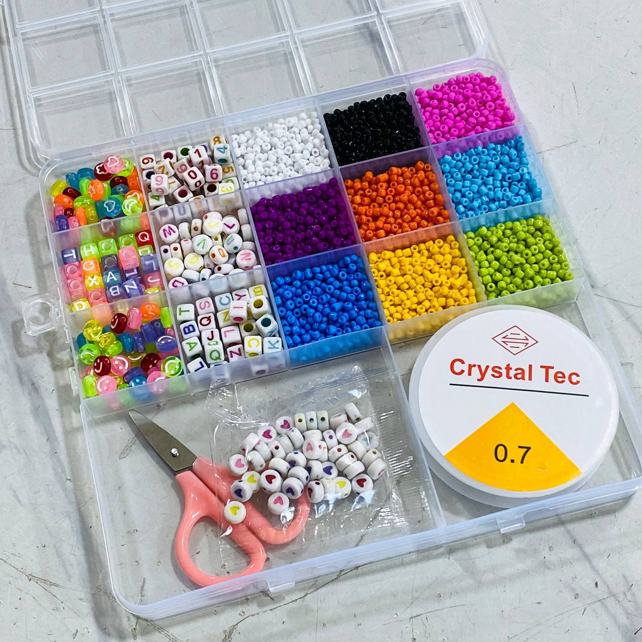 طقم صنع اكسسوارات زينة بالخرز والحروف كامل مع سلك