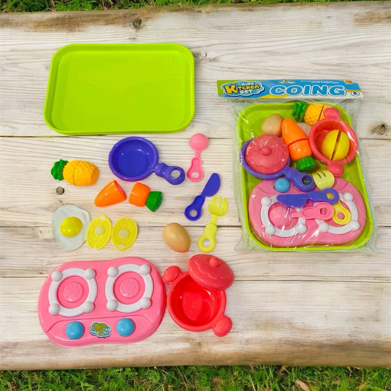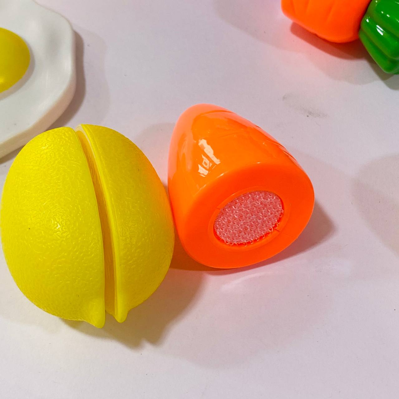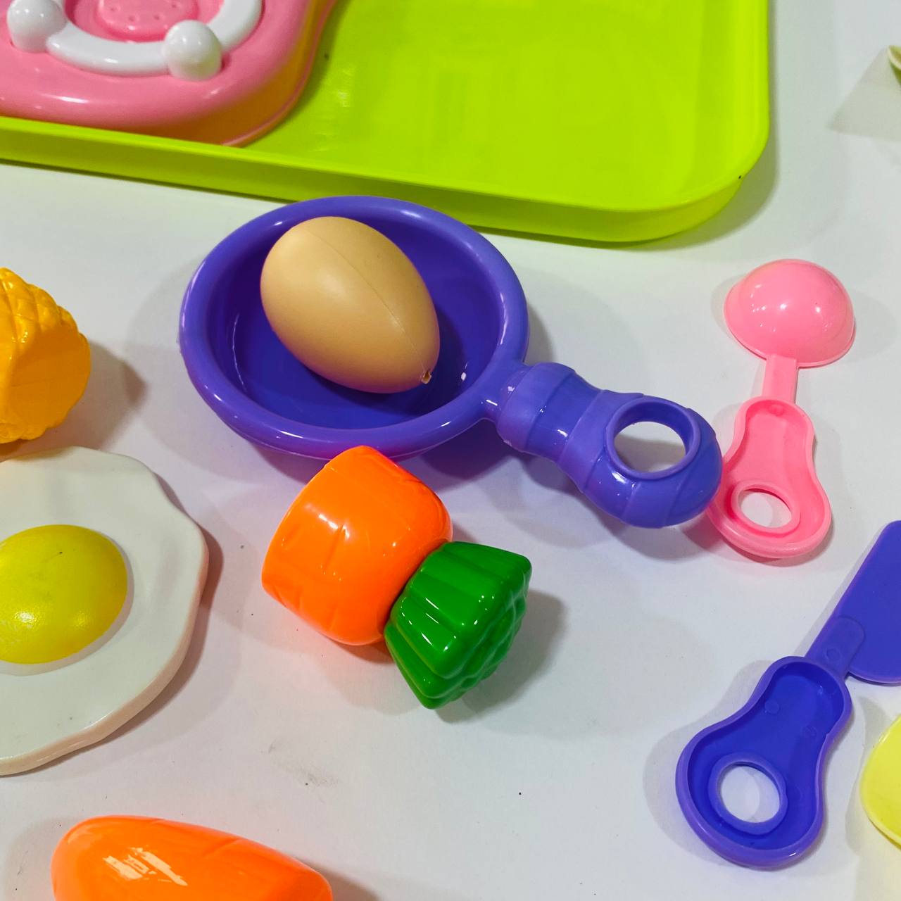طقم لعبة مطبخ تقطيع فواكه وخضروات وغاز للأطفال ، بيض وصحن