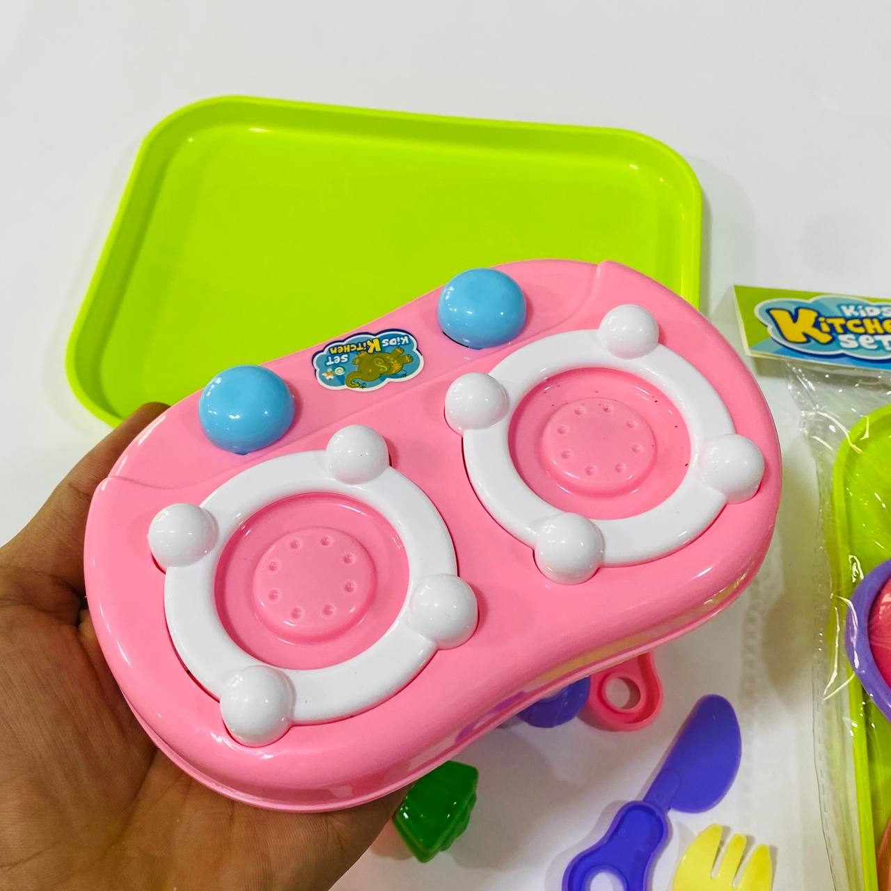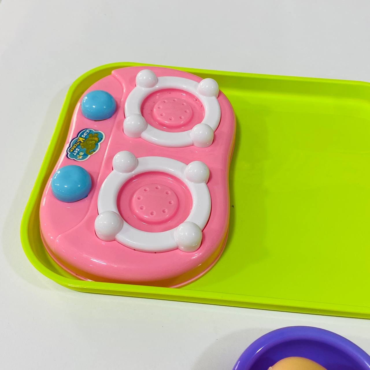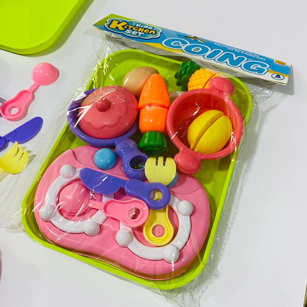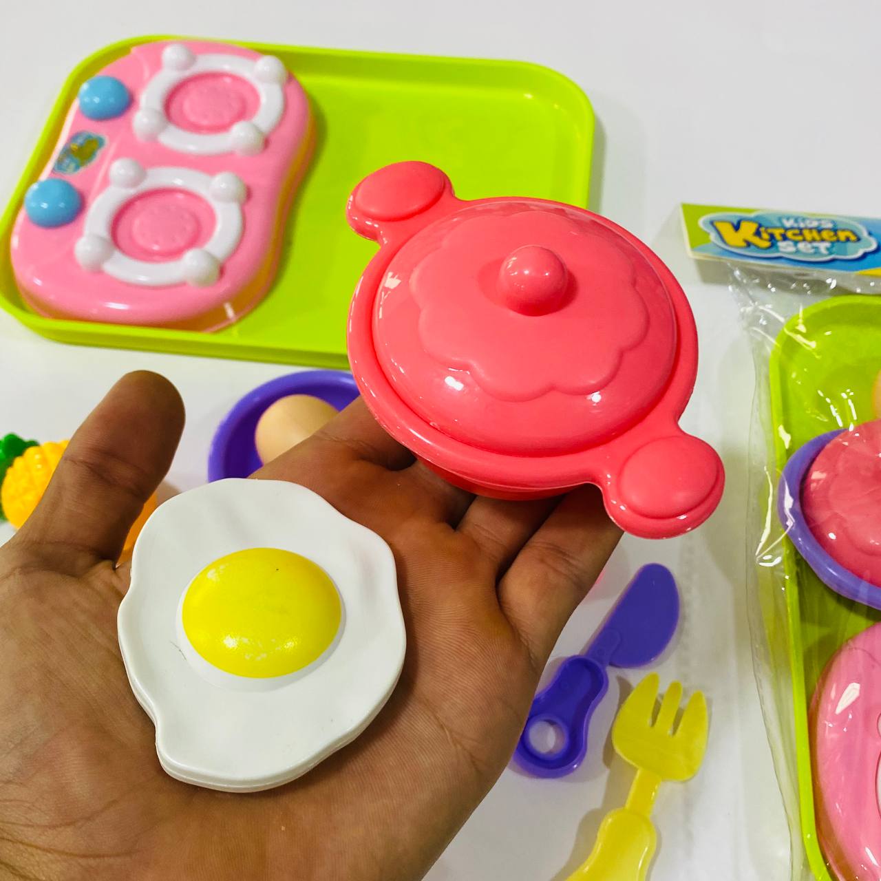 طقم لعبة مطبخ تقطيع فواكه وخضروات وغاز للأطفال ، بيض وصحن