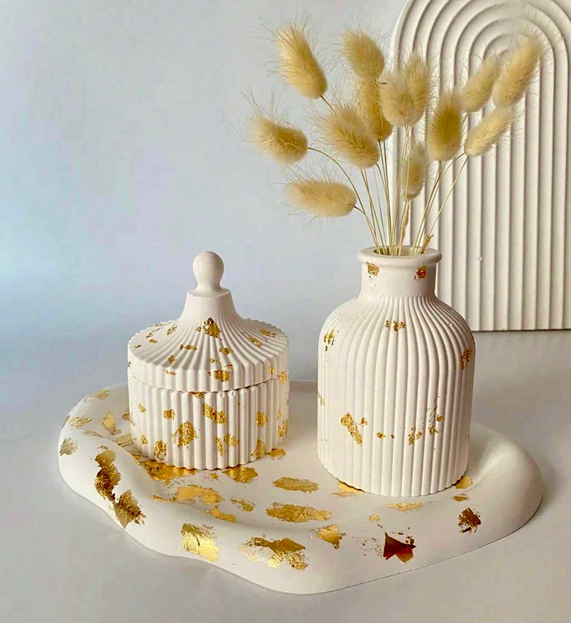 طقم 3 قوالب جبس ديكور منزل سكرية وفازة + سفرة سحابة WFHM77