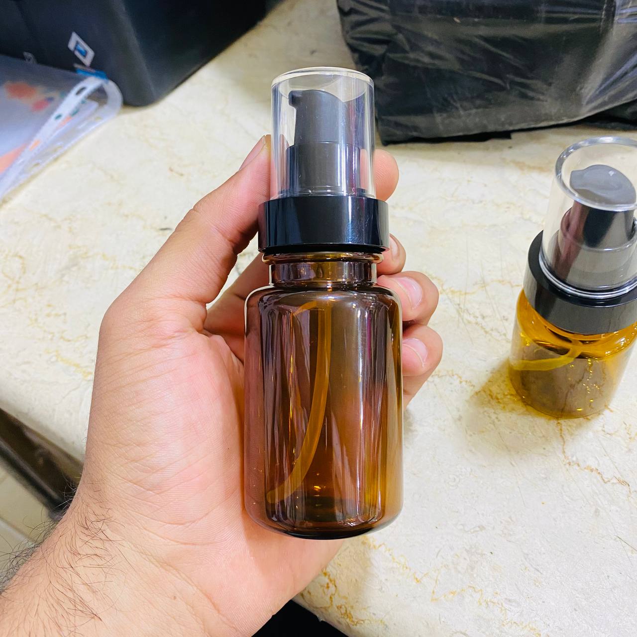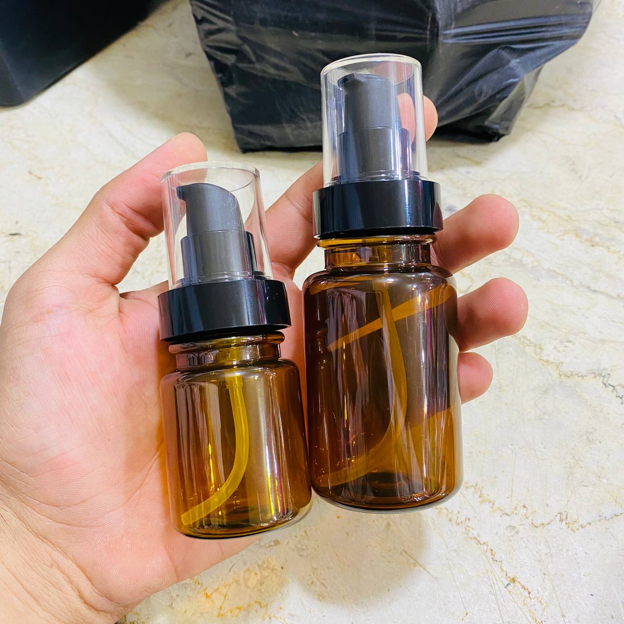 عبوة بلاستيك فاخرة لون بني تستعمل لوشن و زيوت عبوة 60 & 100 مل