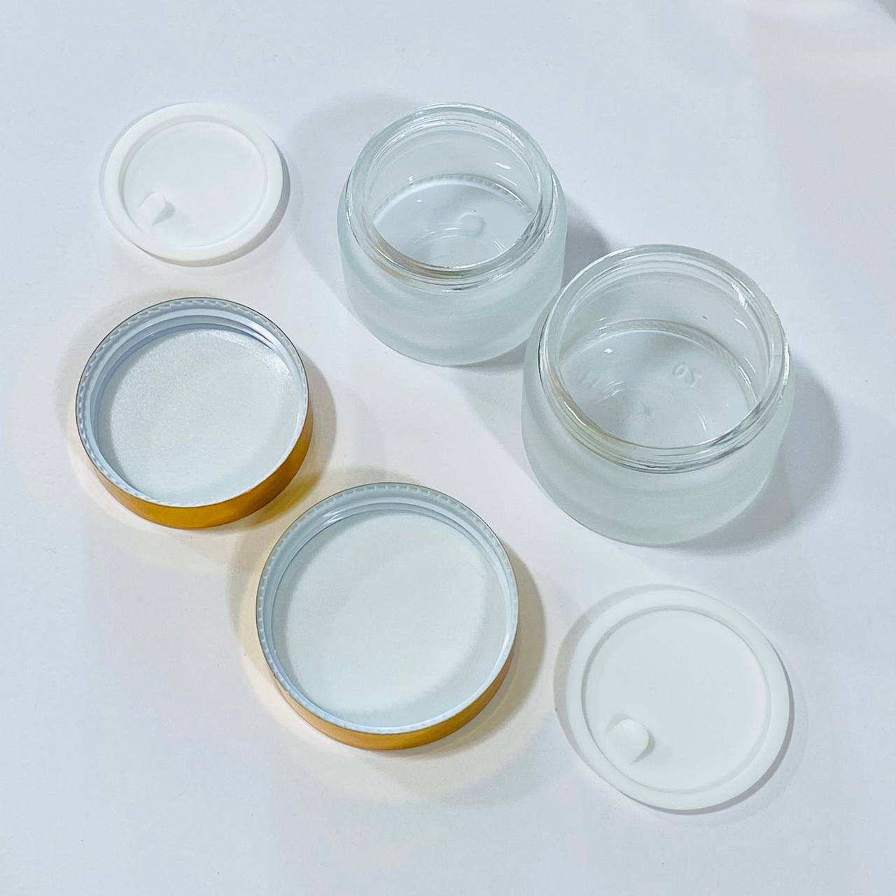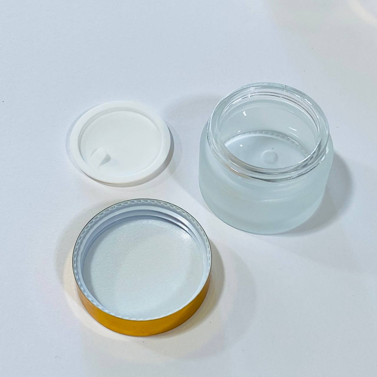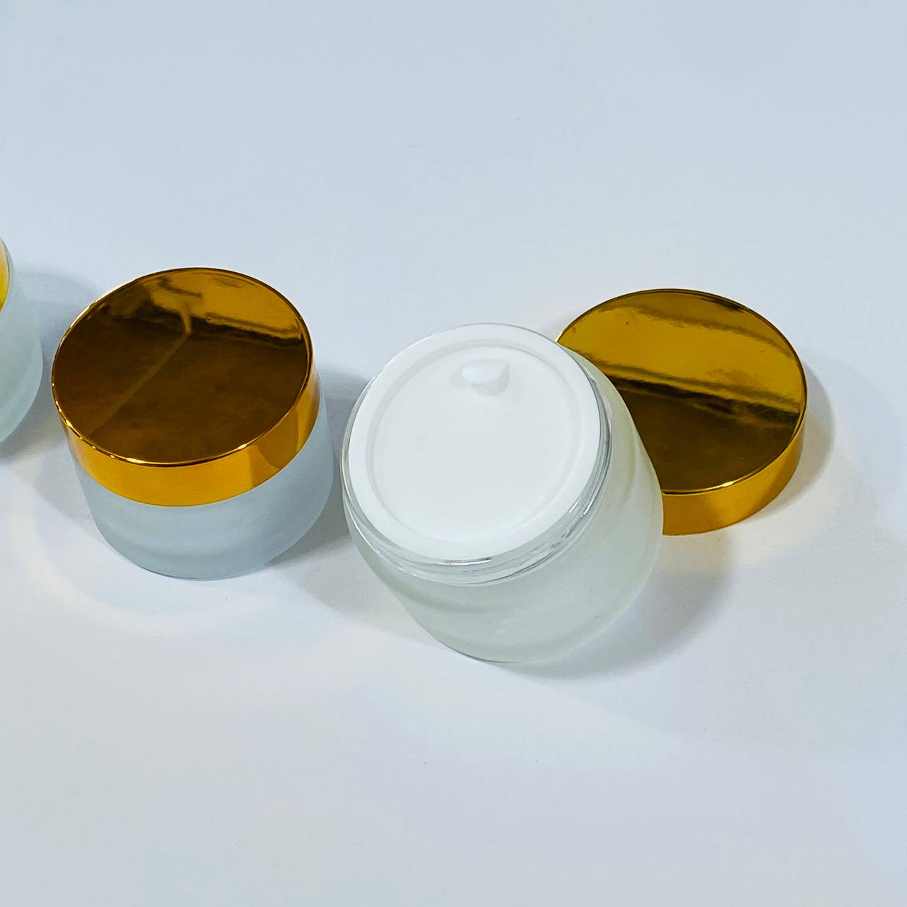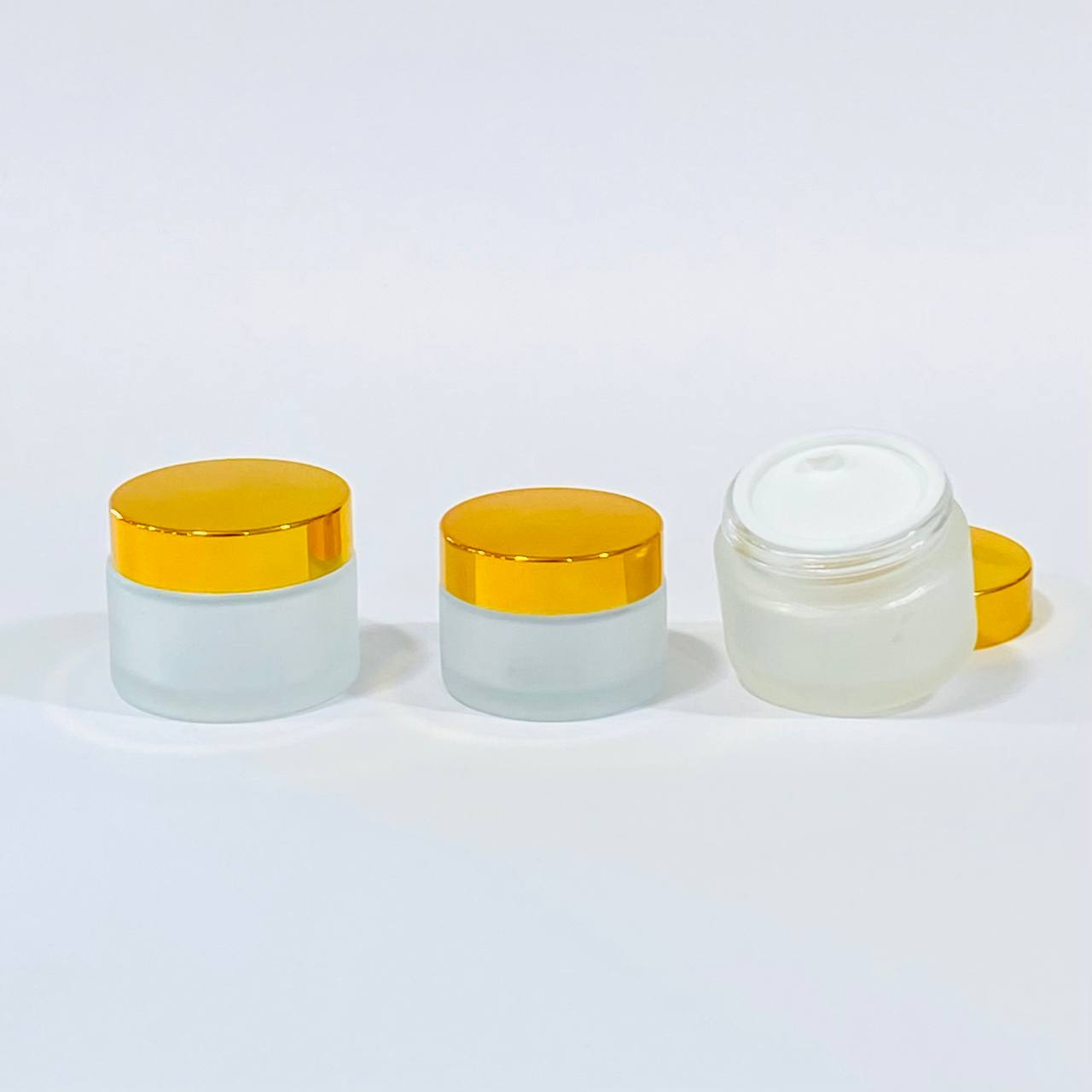 عبوة زجاجية فاخرة معتمة للكريمات عبوة 30 & 50 مل مع غطاء حماية ومغطة ذهبية
