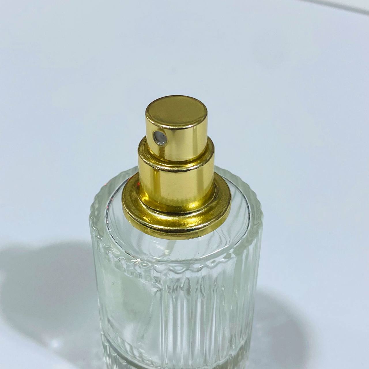 عبوة زجاج عطر فارغة نسائية فاخرة مع مكان ملصق رأس ذهبي – 30 مل