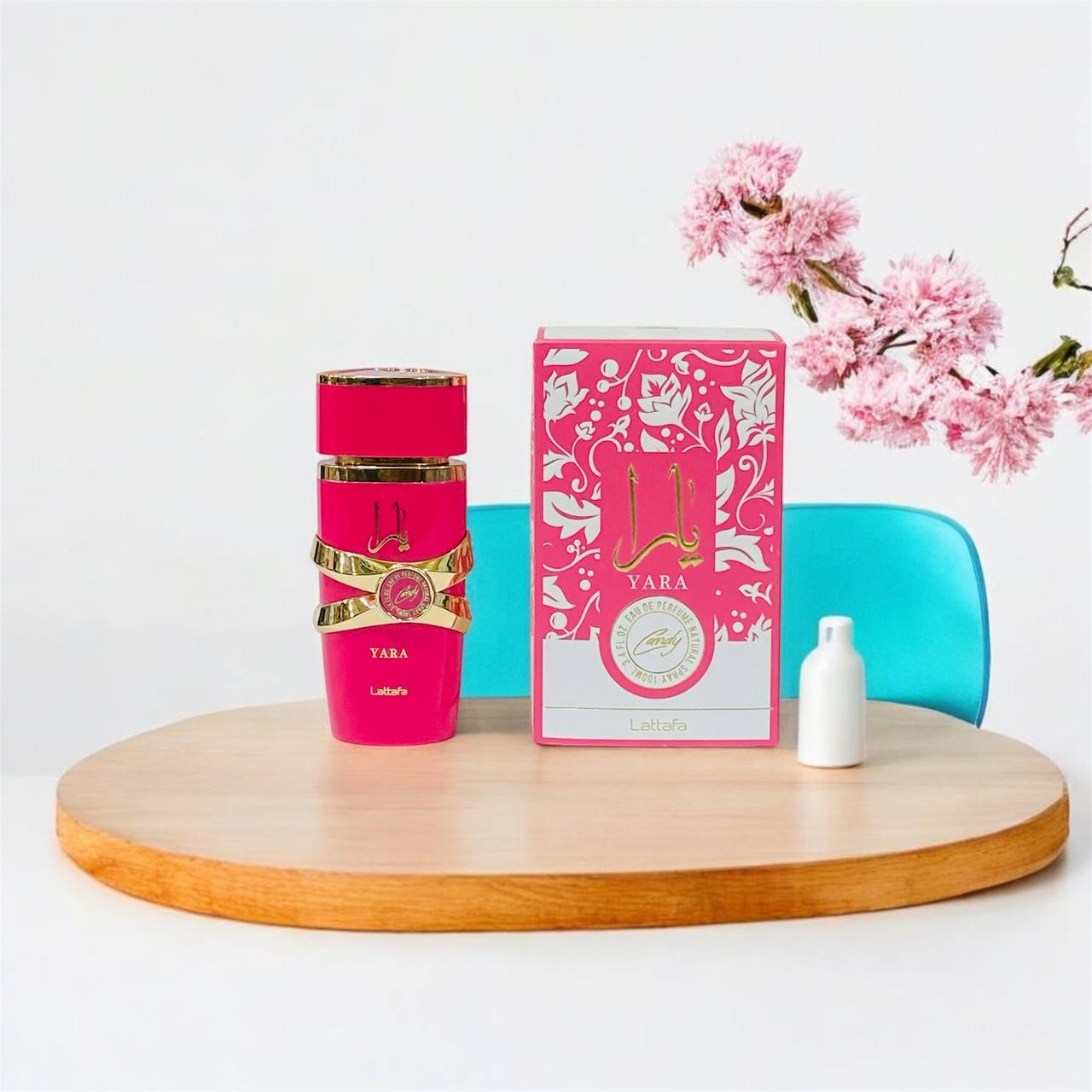 - استمتع برحلة ساحرة من الحلاوة والأنوثة مع عطر يارا كاندي من لطافة، الإضافة المثالية لمحبي العطور الفريدة. هذا العطر يقدم مزيجًا غنيًا ومتوازنًا من النغمات الجذابة التي تضفي على إطلالتك لمسة عصرية وأنيقة تدوم طوال اليوم.