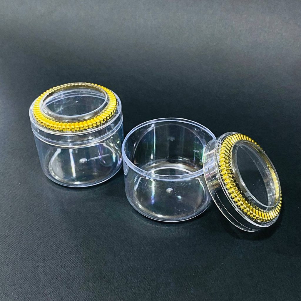 علب شفافة بغطاء ذهبي محكم لتخزين المنتجات والتوزيعات للمناسبات