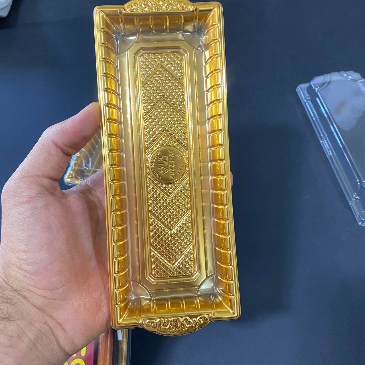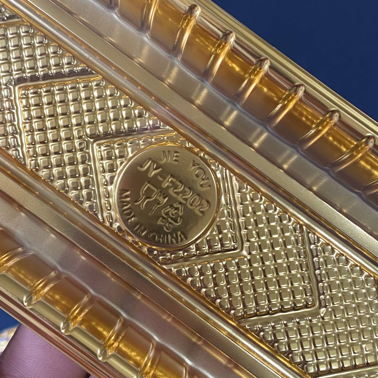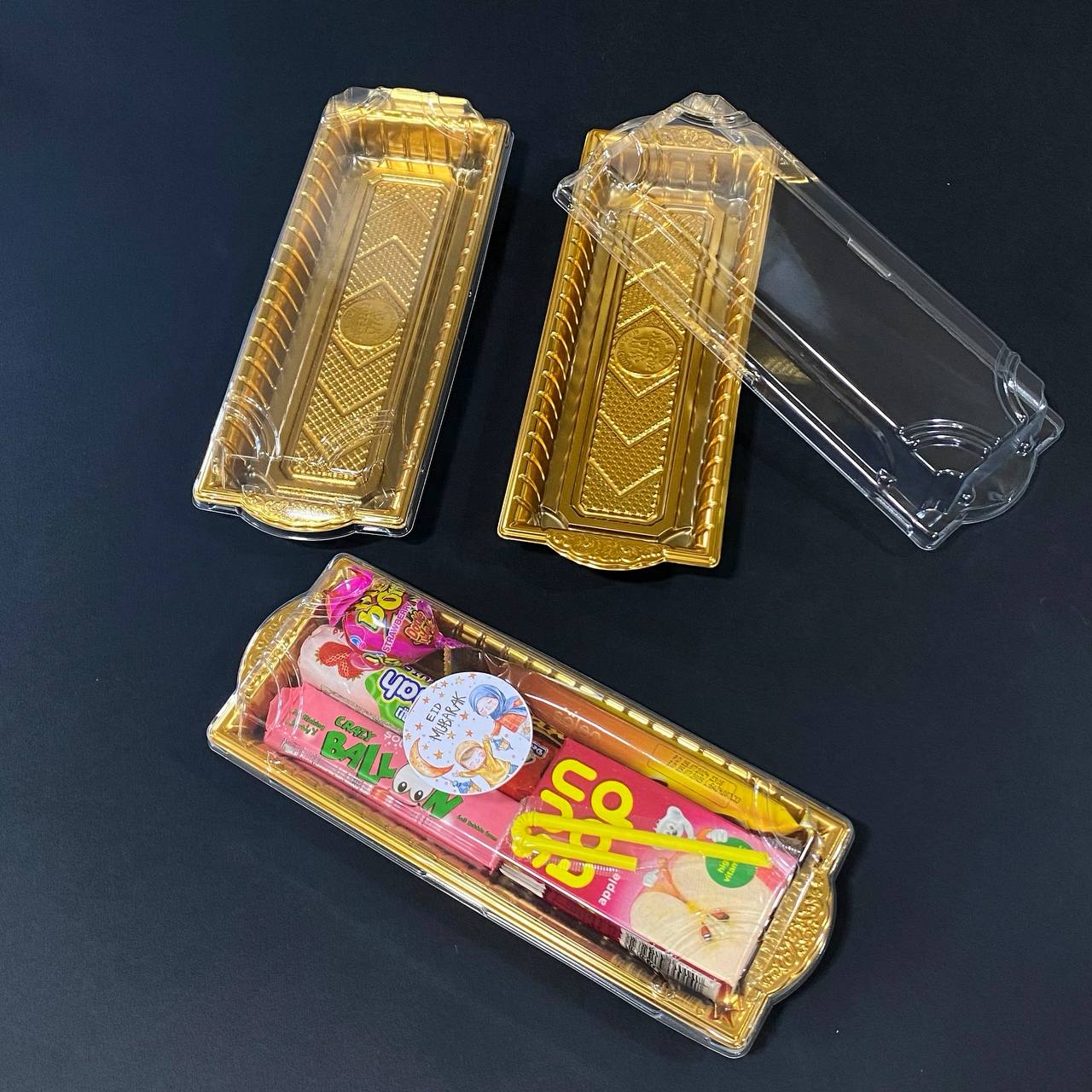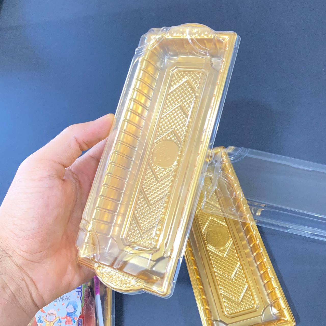 علبة فاخرة فارغه بلاستيك ذهبية متعددة الاستعمالات بغطاء شفاف للاستعمال الغذائي والكيكات