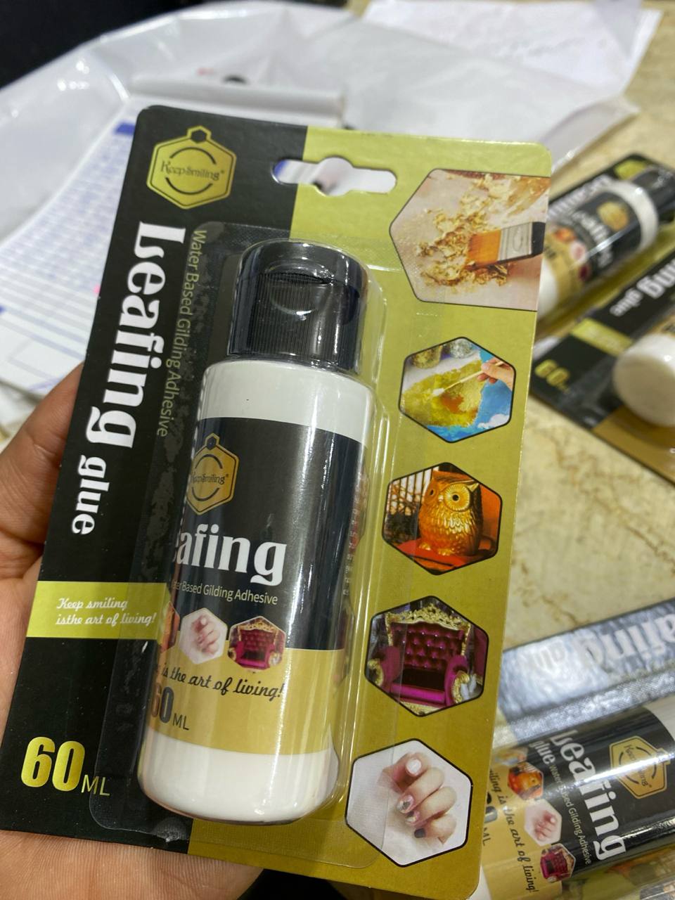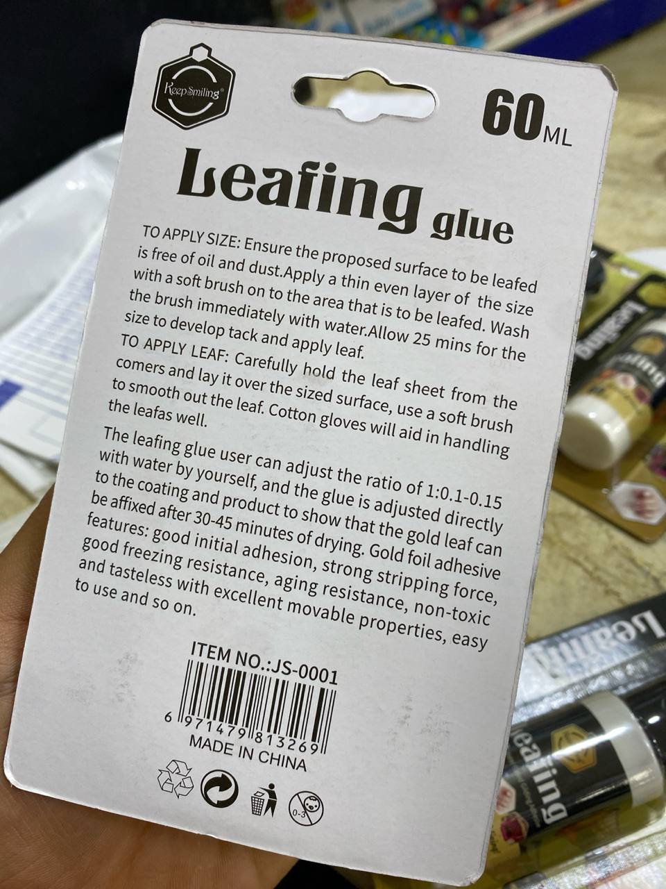 - Leafing glue هو نوع من الغراء المستخدم في تطبيق أوراق المعادن الرقيقة (مثل أوراق الذهب أو الفضة أو النحاس) على الأسطح المختلفة. يتميز هذا الغراء بأنه يصبح لاصقًا بعد أن يجف جزئيًا، مما يسمح لأوراق المعادن بالالتصاق به بسهولة عند وضعها. يستخدم عادة في الفنون والحرف اليدوية، مثل التذهيب والديكورات الفاخرة على الخشب والزجاج والسيراميك وغيرها من المواد.