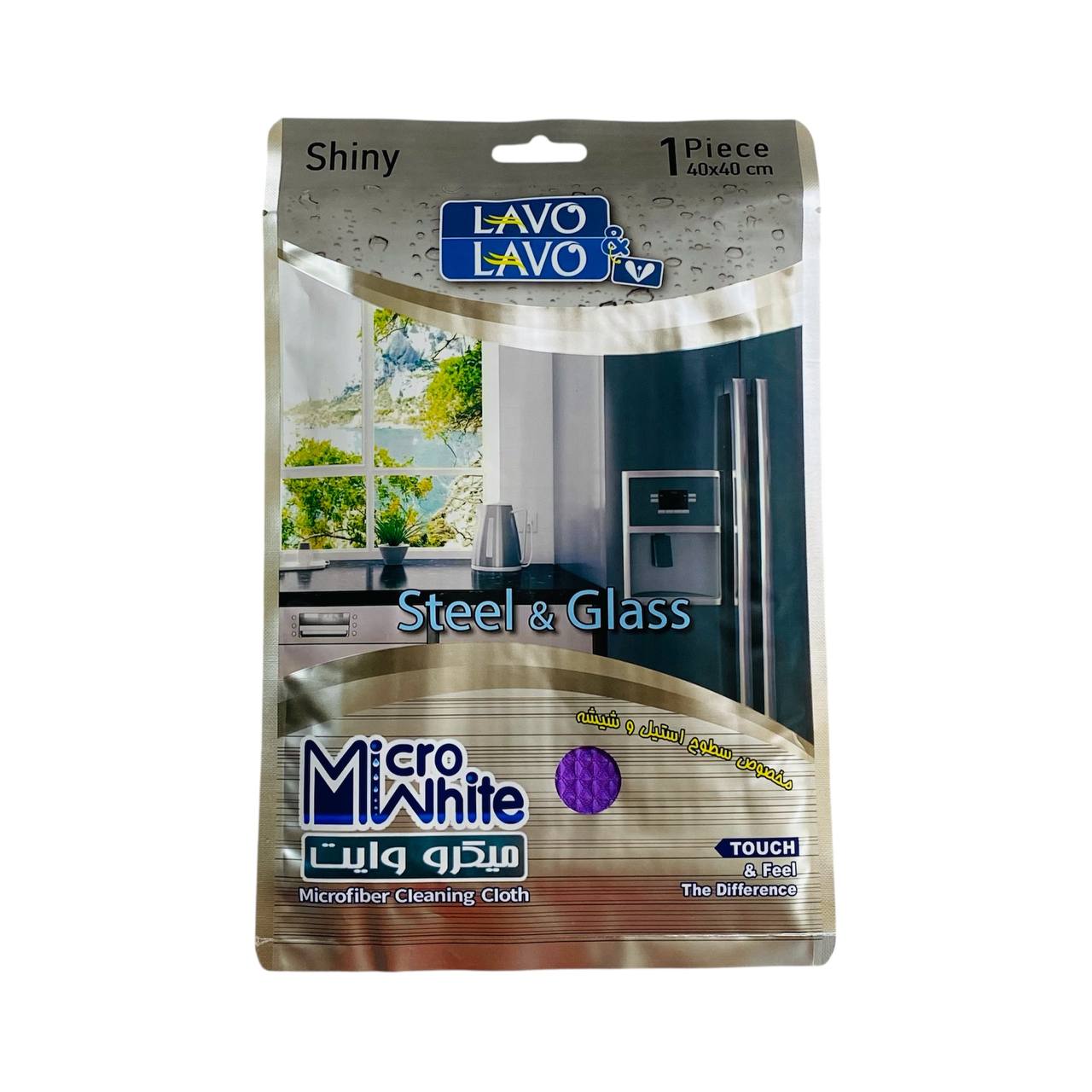 - المنتج عبارة عن قطعة قماش تنظيف من الألياف الدقيقة (مايكروفايبر) مخصصة لتنظيف الأسطح الزجاجية والستانلس ستيل.