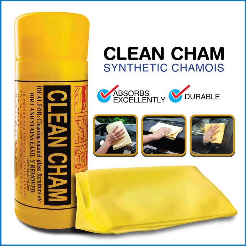 - المنتج اللي في الصورة اسمه CLEAN CHAM، وهو عبارة عن فوطة شامواه (Chamois Cloth) صناعية أو شبه طبيعية، تستعمل للتنظيف والتلميع.