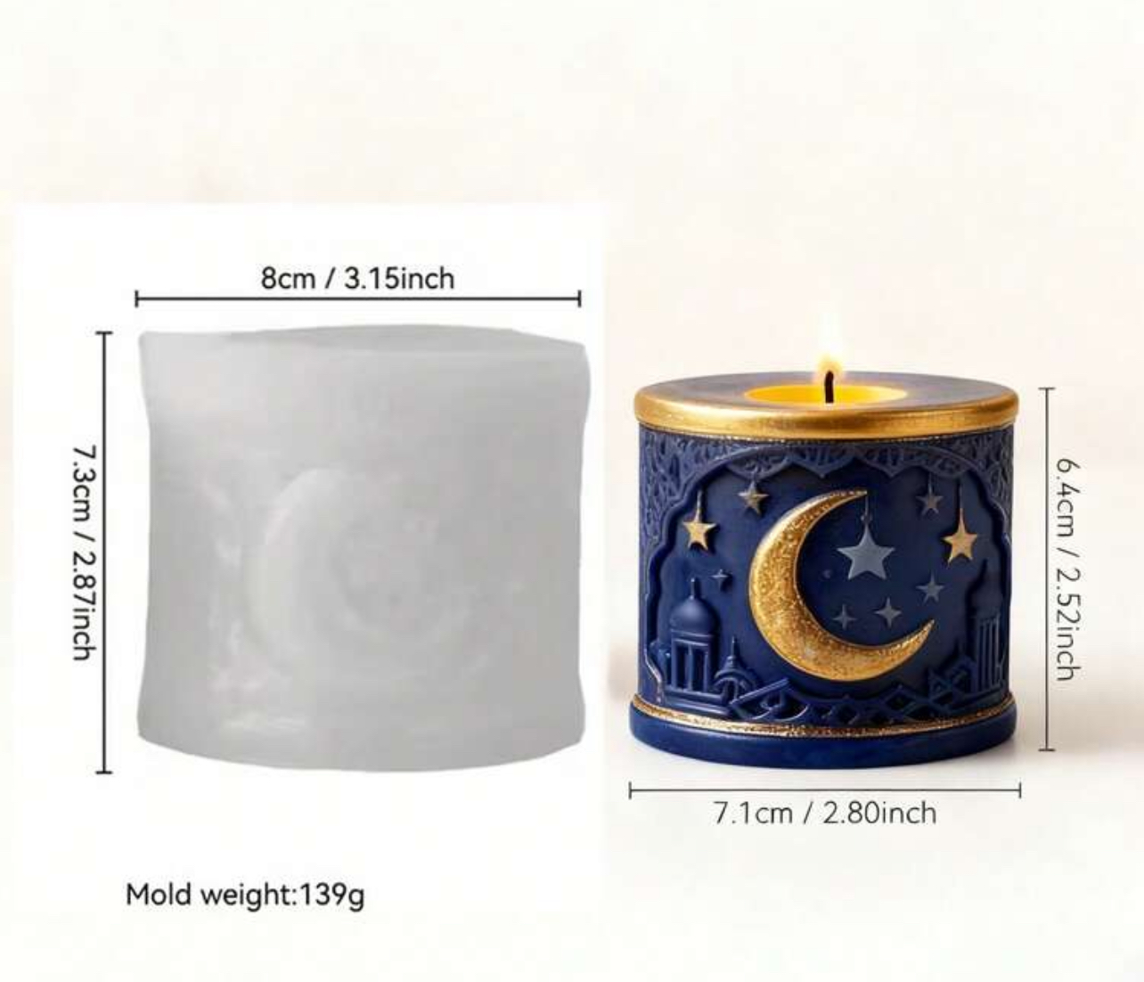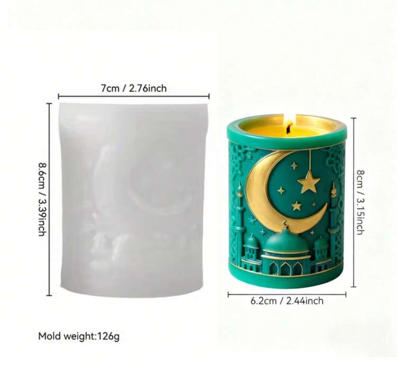 قالب سيلكون اسطواني بقش نجمة ⭐️ وهلال 🌙وجامع 🕌 WFHM77