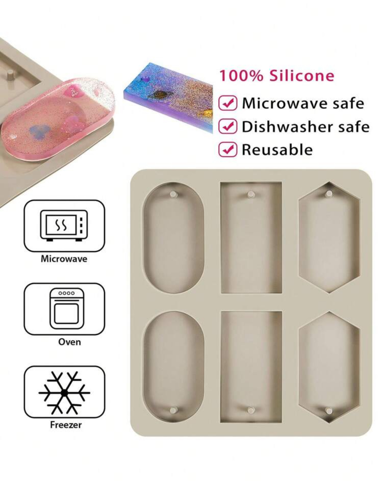 قالب سيلكون مشكل ب 6 فتحات متعدد الاستخدامات تصنع فواحات الشمع العطرية والجبس لمعطرات السيارة او خزائن